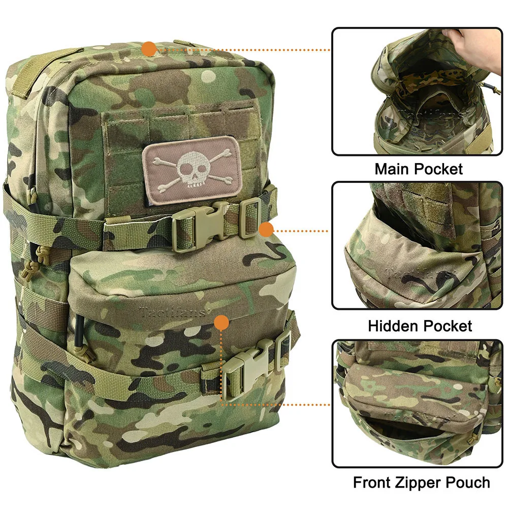 1 [Mochila de hidratación táctica multiusos]: esta mochila de asalto modular es una mochila de hidratación o asalto multiusos con un bolsillo interno de hidratación, un compartimento principal, una bolsa frontal con cremallera y un espacio adicional para inserciones adicionales.Y también puedes usarlo como respaldo independiente (debe comprar un arnés).