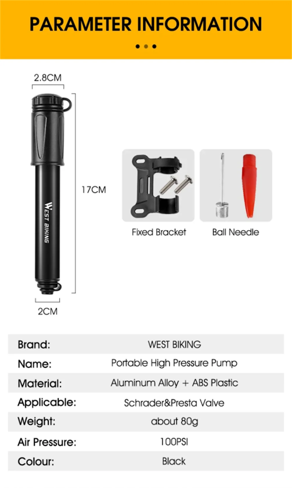 Liviana y portátil: la mini bomba para bicicleta está hecha de aleación de aluminio, lo que la hace liviana y portátil, lo que facilita su transporte mientras anda en bicicleta.