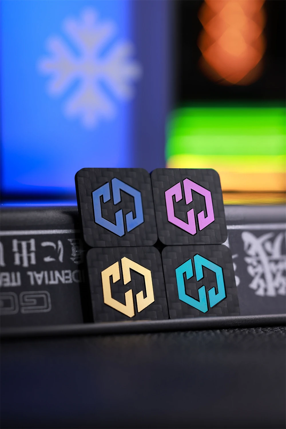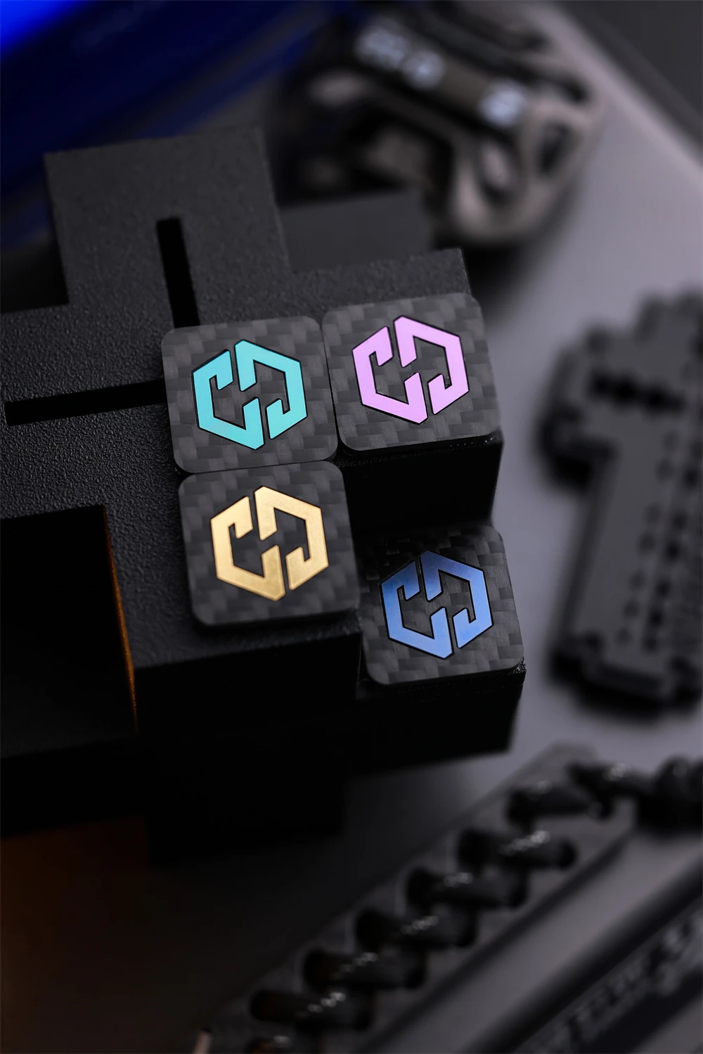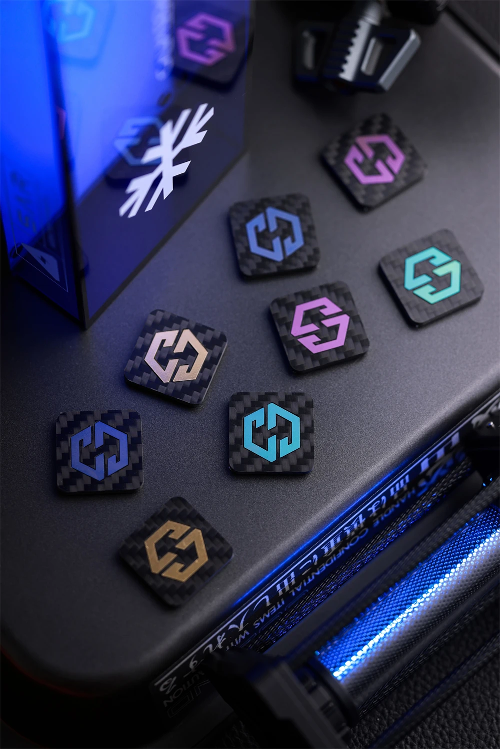 Mini brazalete con apliques cuadrados para decoración de ropa y bolso, parche con logotipo táctico de titanio con incrustaciones de fibra de carbono de 1 pulgada