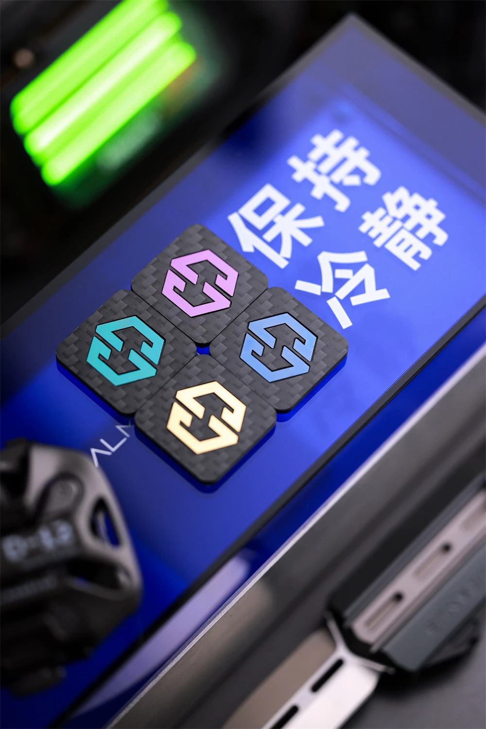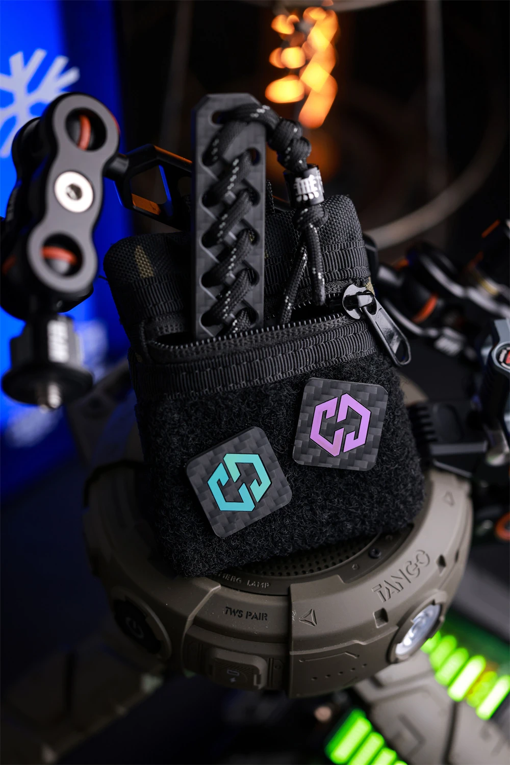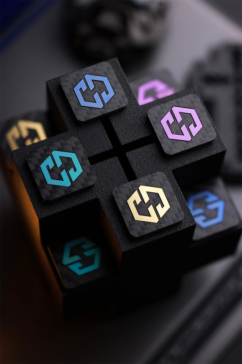 Mini brazalete con apliques cuadrados para decoración de ropa y bolso, parche con logotipo táctico de titanio con incrustaciones de fibra de carbono de 1 pulgada