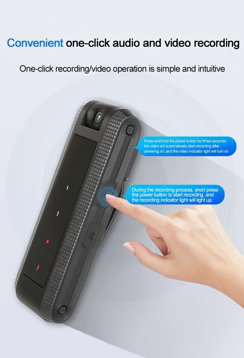 La operación de grabación/vídeo con un solo clic es simple e intuitivaMantenga presionado el botón de encendido durante tres segundos, el vídeo comenzará a grabar automáticamente después de encenderse y la luz indicadora de vídeo se encenderá.Durante el proceso de grabación, presione brevemente el botón de encendido para comenzar a grabar y la luz indicadora de grabación se encenderá.