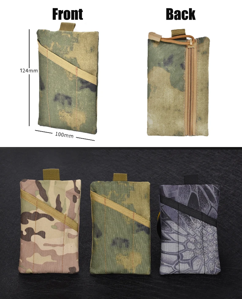 Material:Oxford Tamaño: 22*13,5 cm/27*17CM(S/M) Peso: 0,05 kg Adecuado para: deporte al aire libre, caza, senderismo, escalada, camping Tipo: Bolsa de exterior Características: portátil, resistente al agua Paquete: 1 funda táctica tipo cartera