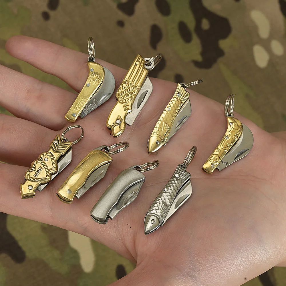 Nombre del producto: Mini cuchillo plegable de autodefensa, llavero de cuchillo de latón