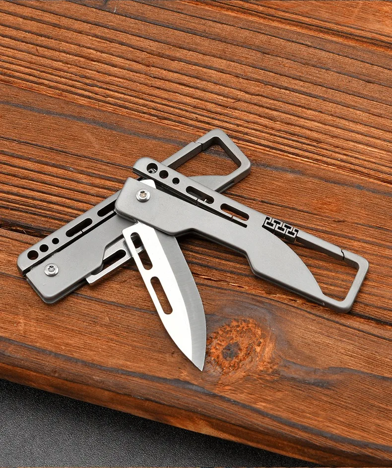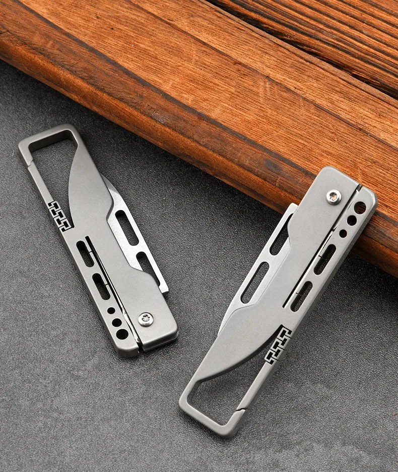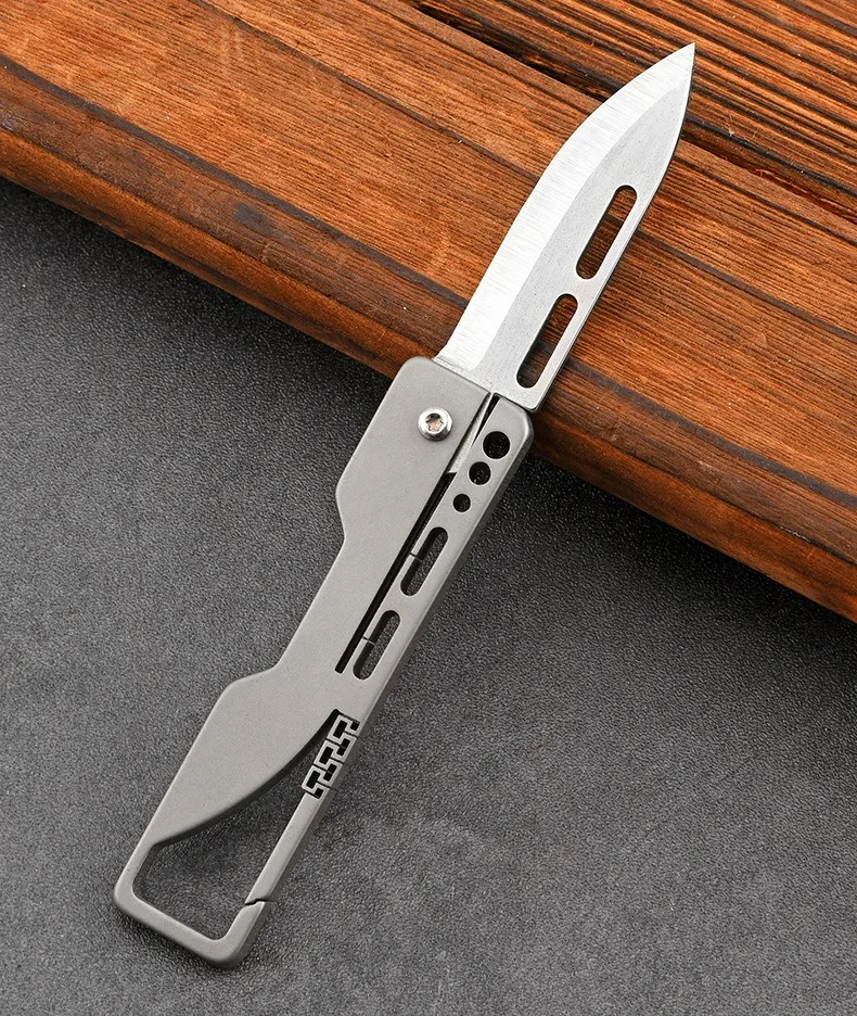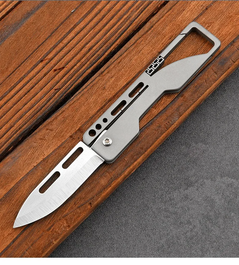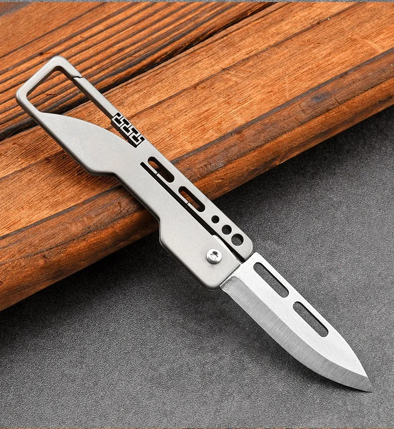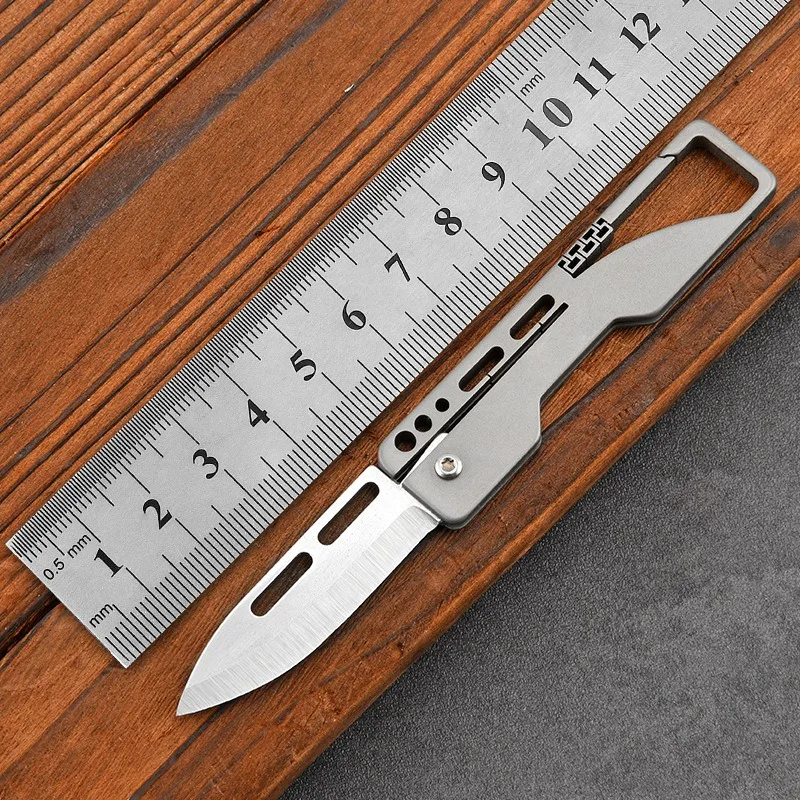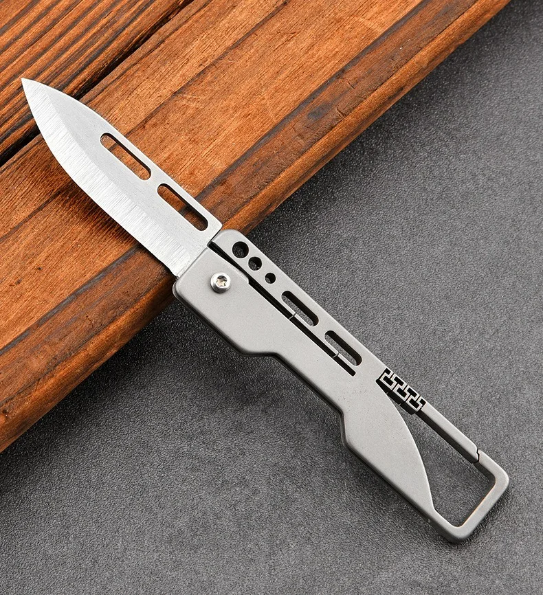 Mini cuchillo de bolsillo de transporte EDC de titanio, llavero colgante, cuchillo plegable, cuchillo de fruta portátil, cuchillo de mensajería de desembalaje