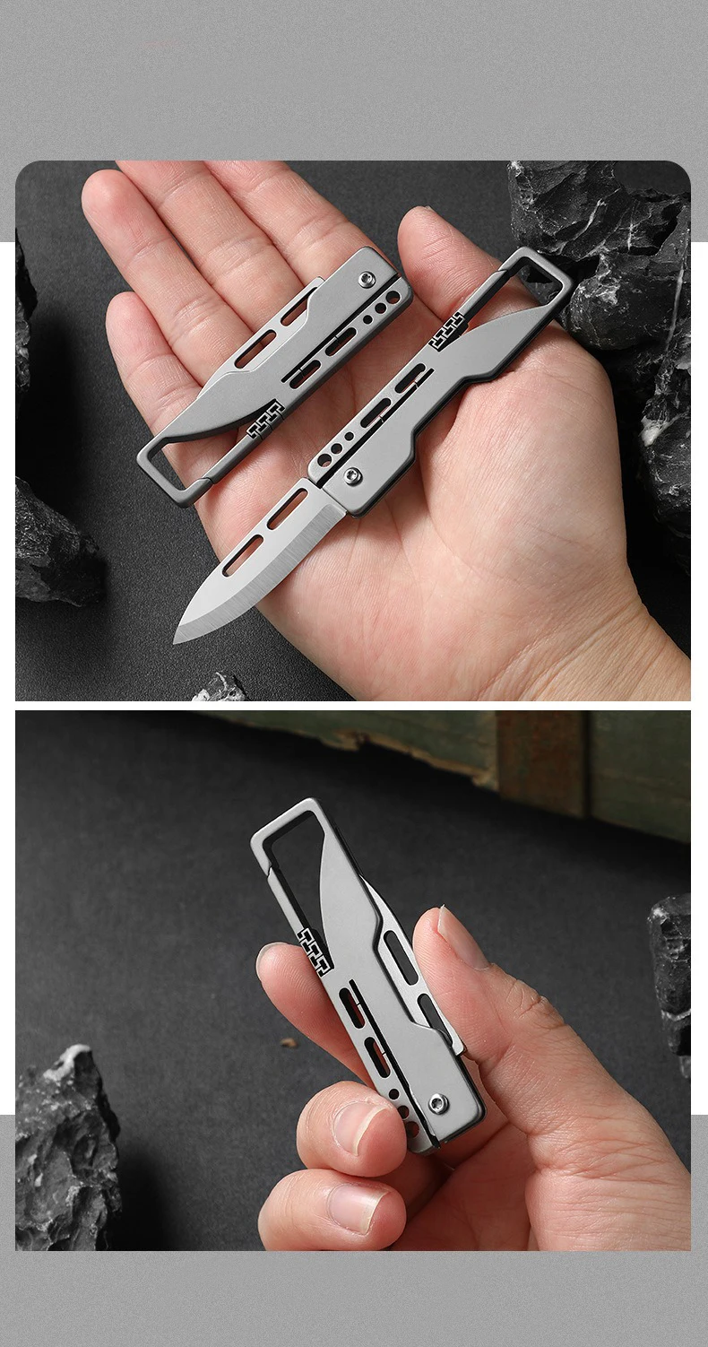Mini cuchillo multifuncional de aleación de titanio, llavero con abridor de botellas, cuchillo plegable de alta dureza, cuchillo de mensajería afilado para desembalar