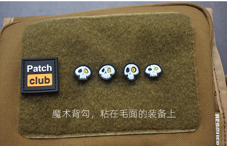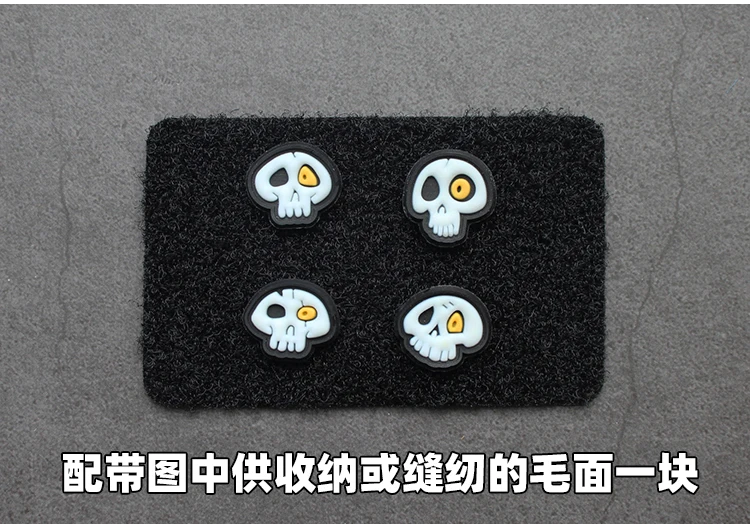 Mini insignia de moral de esqueleto de goma de cuatro piezas, parches de PVC para ropa, pegatinas luminosas, parche de gancho y bucle, brazalete para mochila
