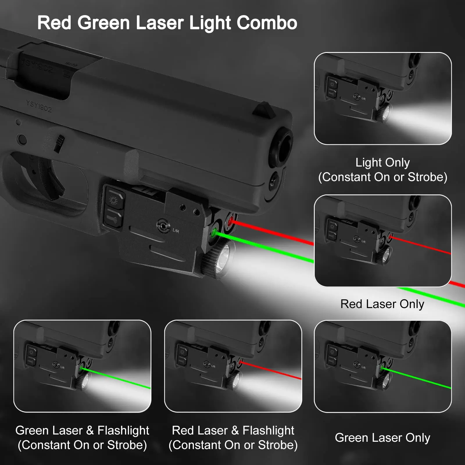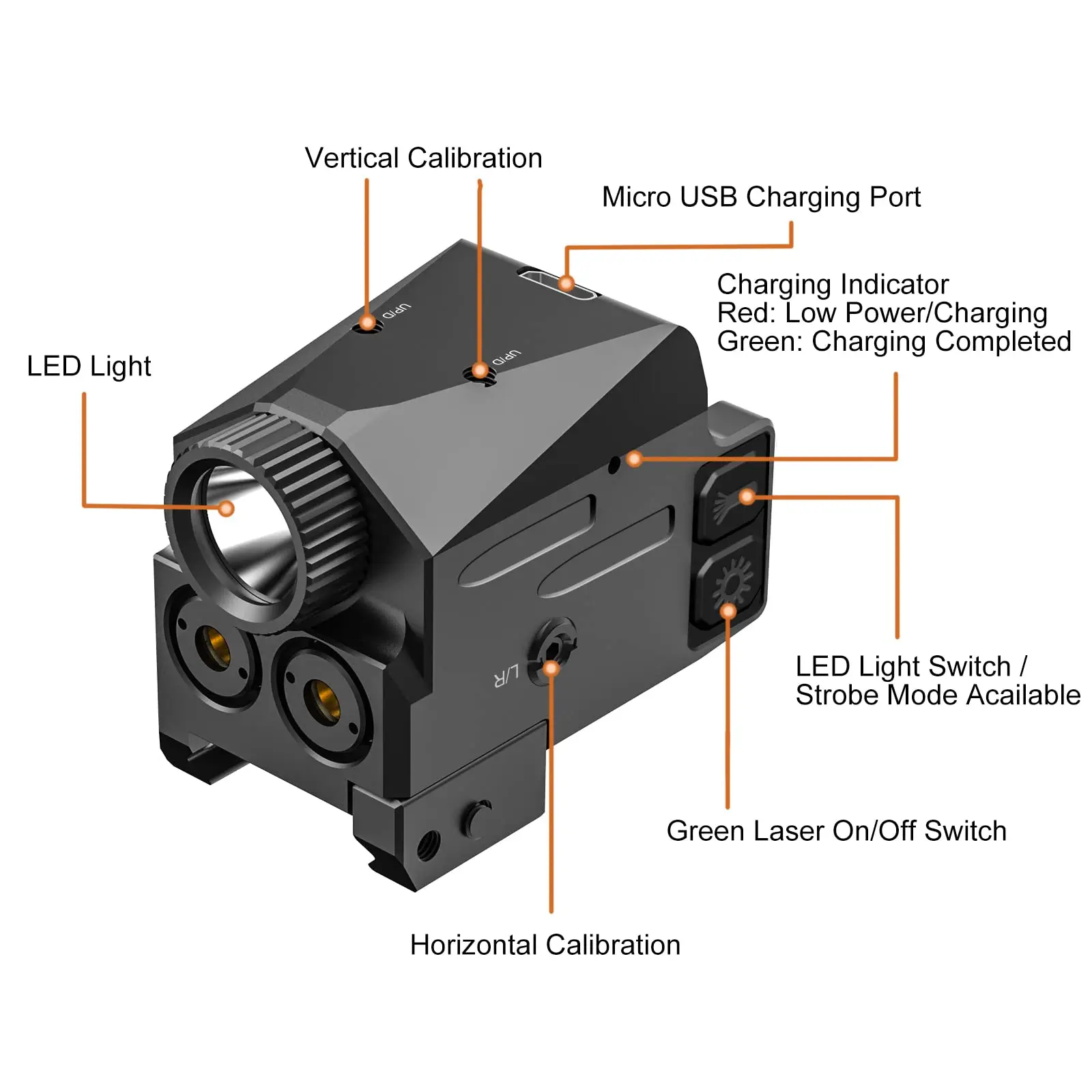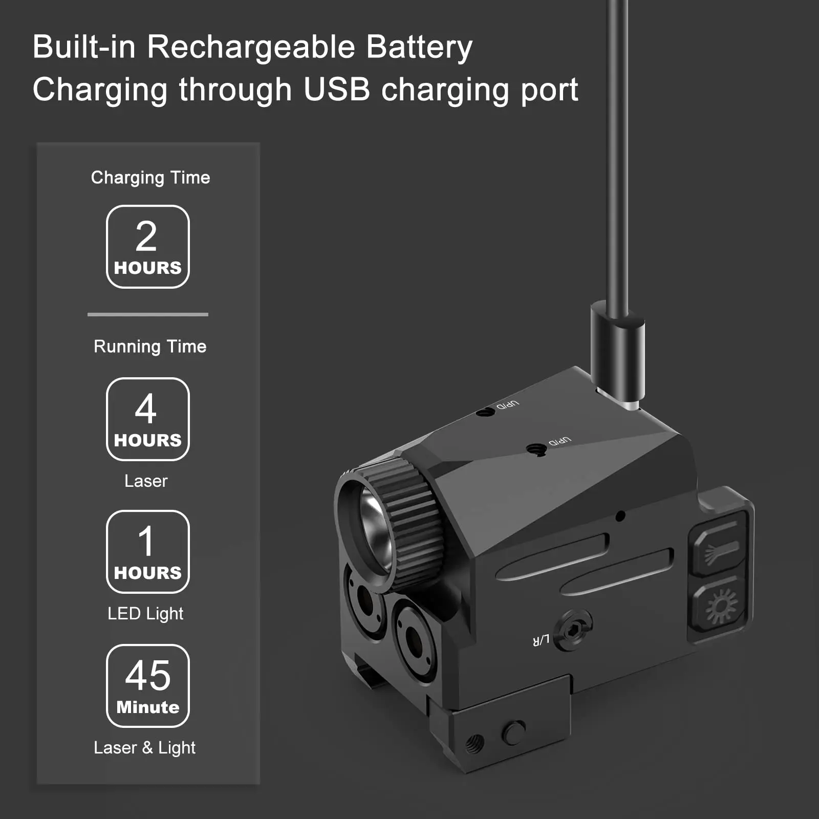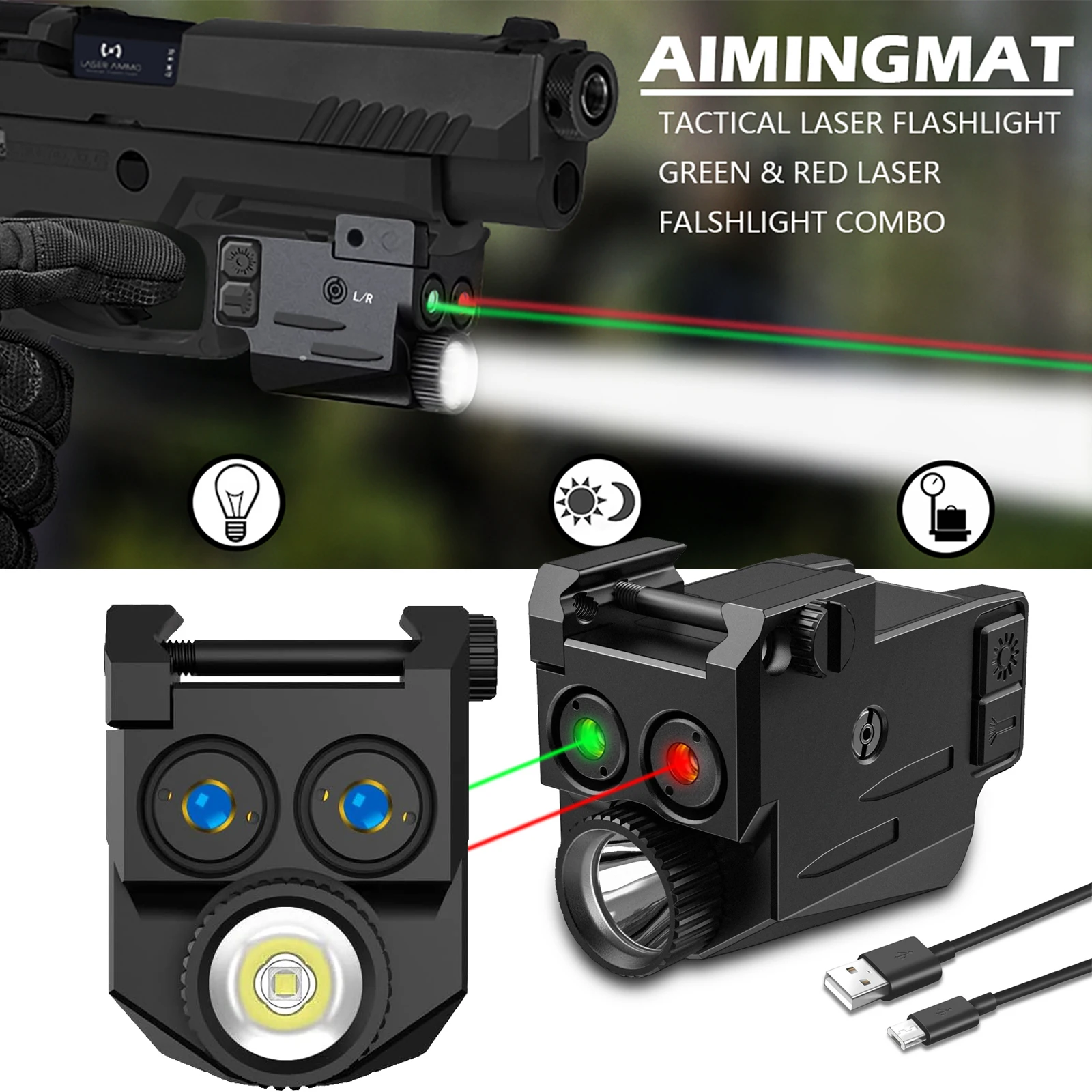Mini linterna 2 en 1 de 500 lúmenes con miras láser, mira láser magnética recargable por USB para pistolas, equipo de caza Airsoft