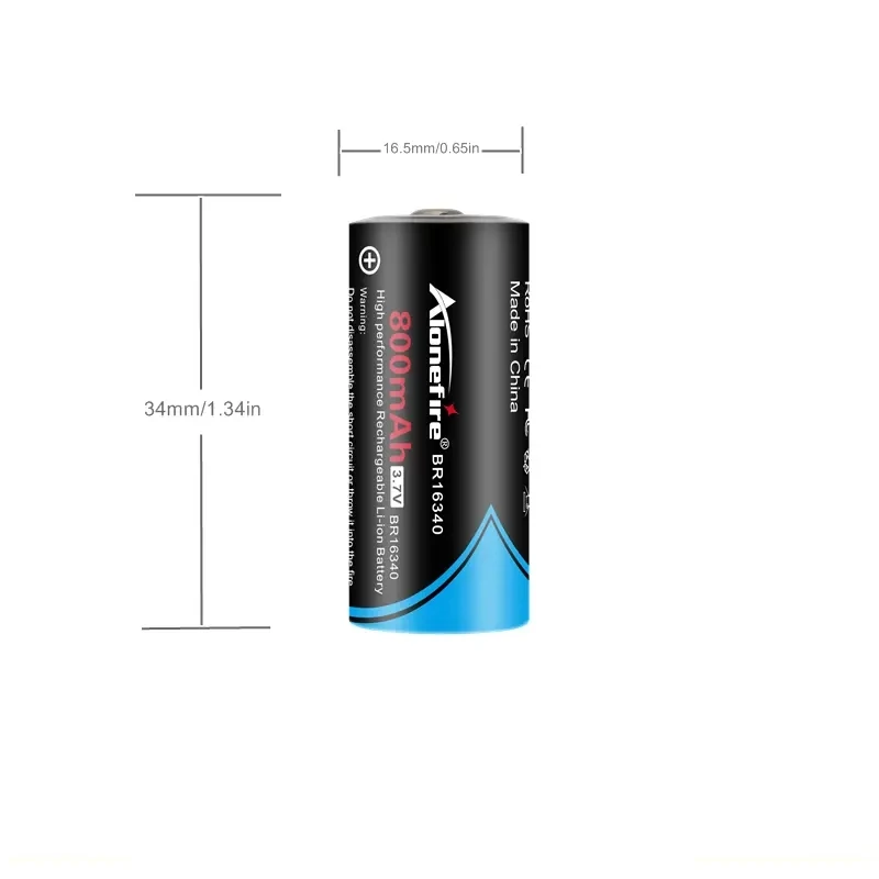 11.Batería: Para 1 batería 16340 de 3,7 V (batería recargable)