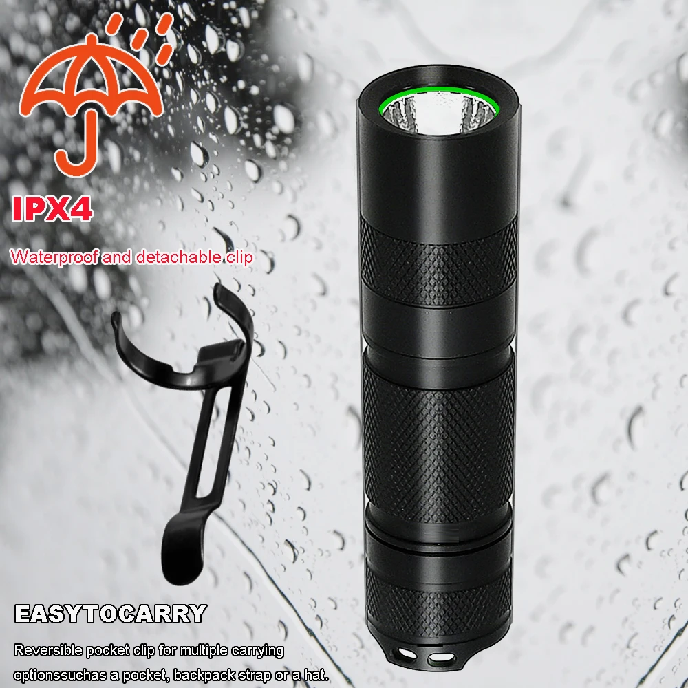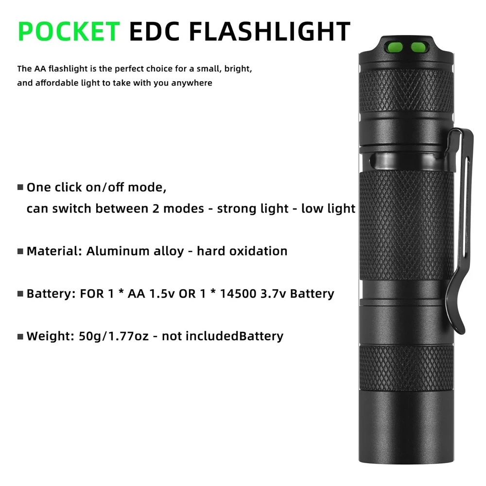 Luz de bolsillo de lúmenes Luz LED de 1 modo G2 LED Luz blanca 6500K, alimentada por baterías AA o 14500, cuando funciona con una batería de 3,7 V o 4,2 V 14500, la salida es de hasta un máximo de 450 lm ~ 800 lúmenes.320 lúmenes cuando se acciona con una batería AA de 1,2 V.