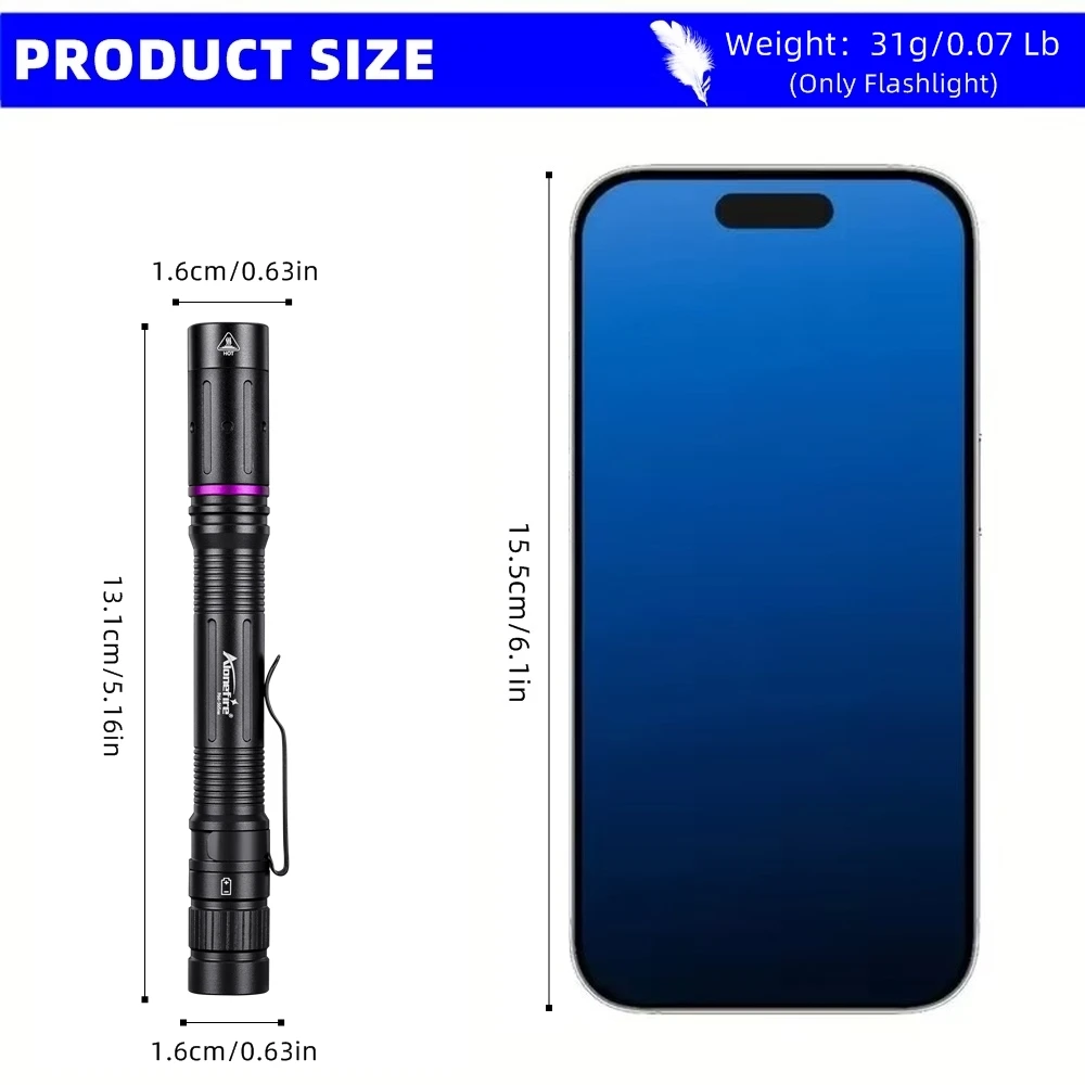Peso neto: aproximadamente 31 g/0,07 lb (solo linterna)
