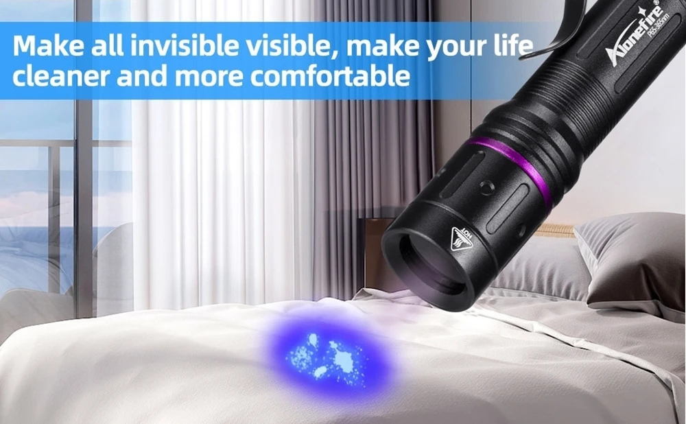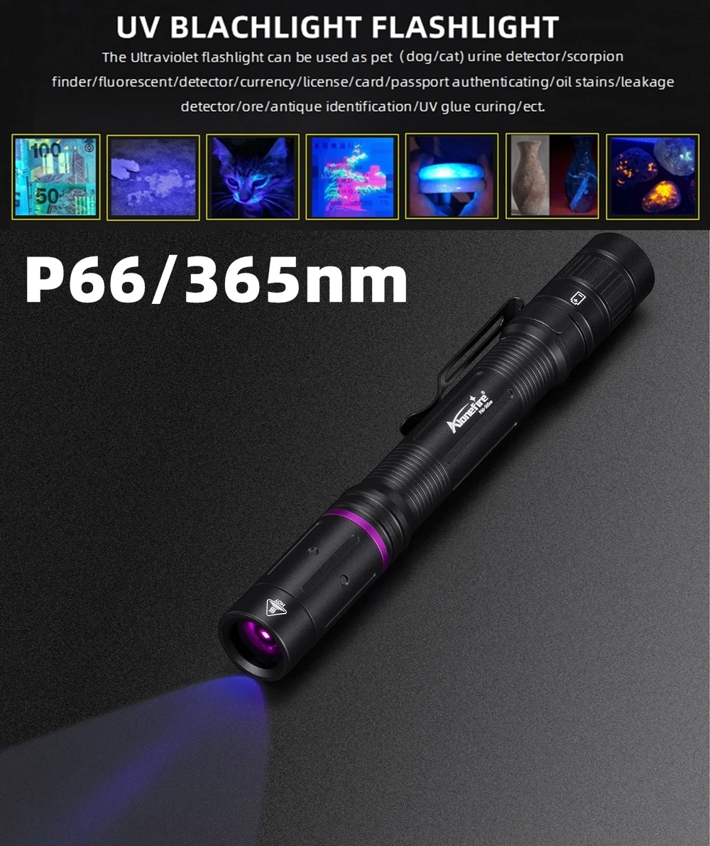La linterna ultravioleta se puede utilizar como detector de orina para mascotas (perros/gato)/escorpión/autenticación de pasaporte/buscador/fluorescente/detector/moneda/licencia/tarjeta, etc.