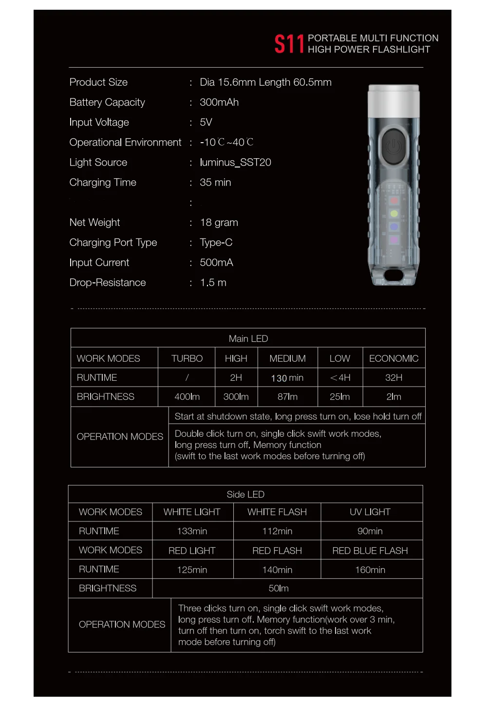 2. Nombre del modelo: S11F (fluorescencia nocturna) noctilucente