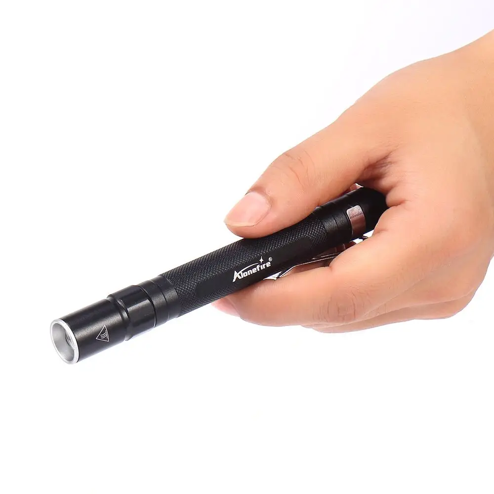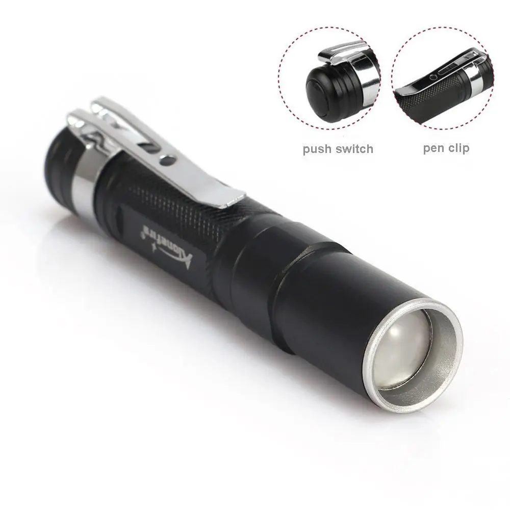 Una linterna tipo bolígrafo buena y brillante. La luz es ligeramente azul, pero cumple su función. Tiene 2 modos: encendido/apagado, hay un zoom y una lente interna. Funciona con 2 pilas AAA. El botón es un poco endeble, así que veremos cuánto dura.