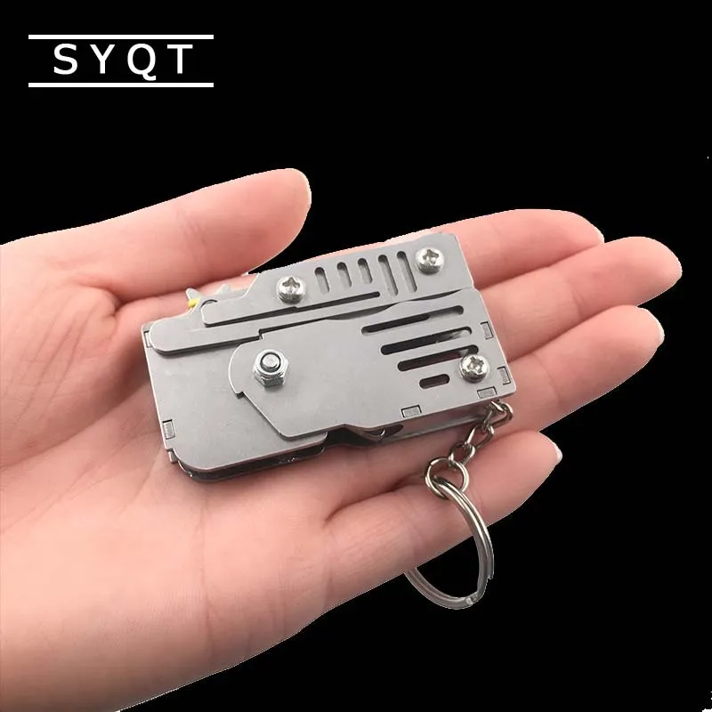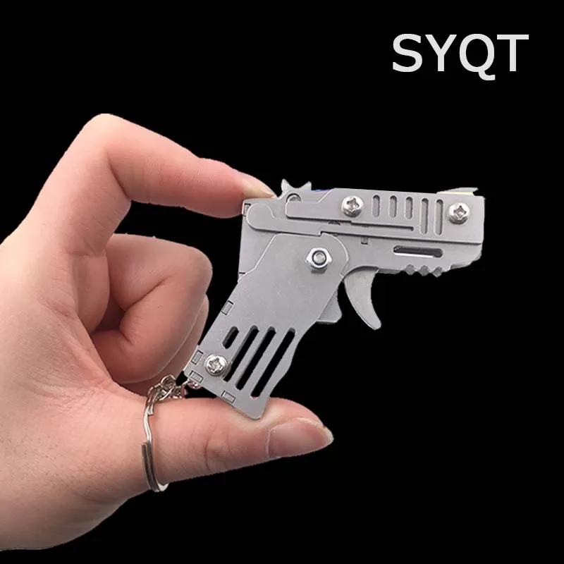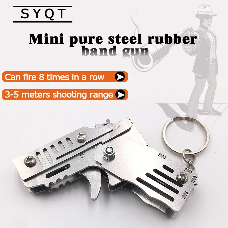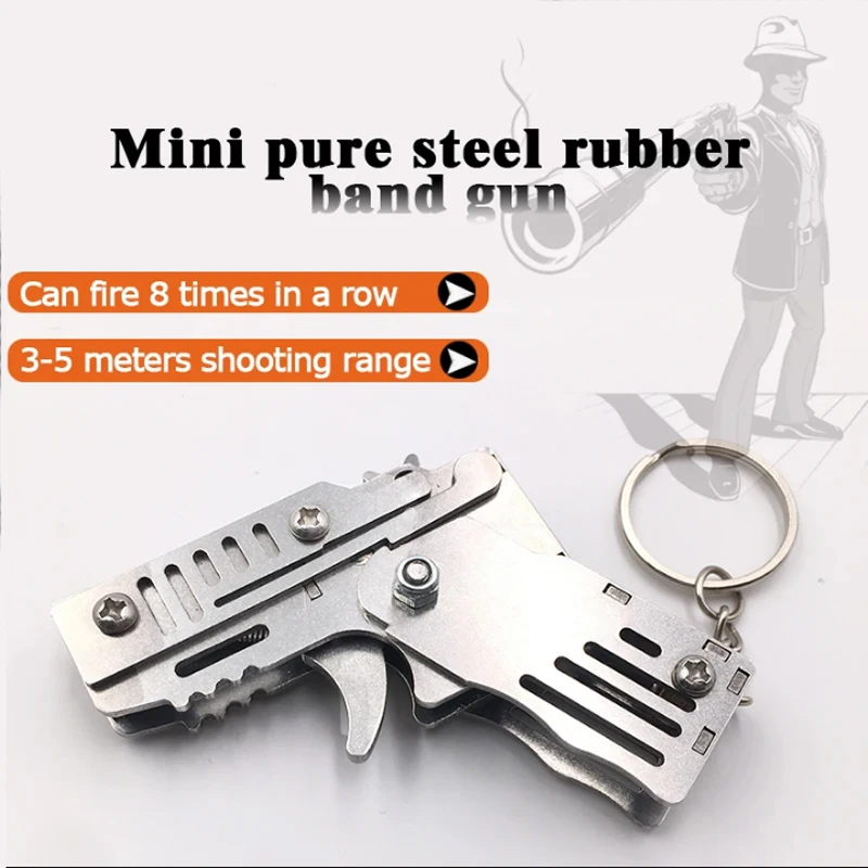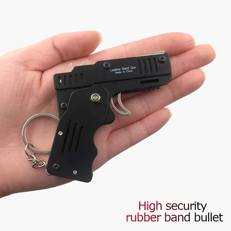 Mini plegable puede sostener el llavero de la pistola de banda de goma seis ráfagas hechas todo Metal tiro juguete regalos herramientas al aire libre piezas de herramientas
