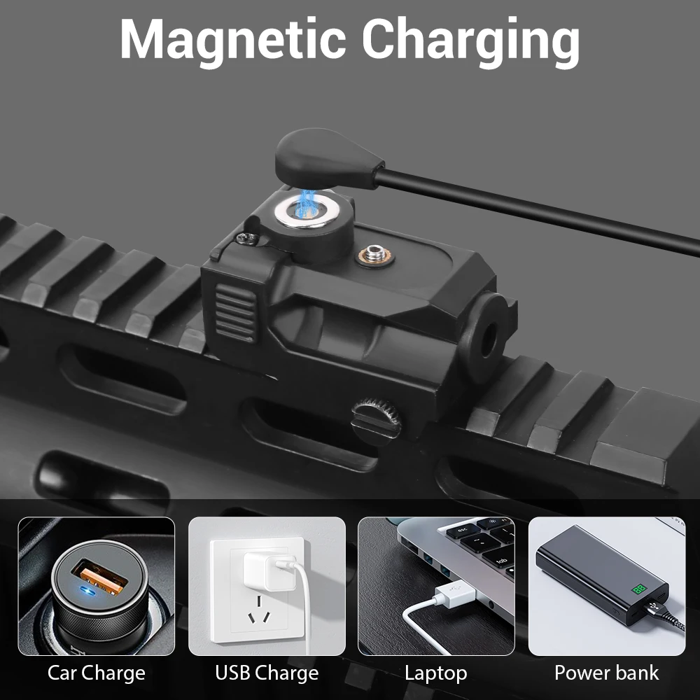 6. Carga USB magnética, completamente cargada en solo 40 minutos, el láser brillante proporciona 4 horas de funcionamiento.No es necesario cambiar las pilas con frecuencia, es más conveniente.