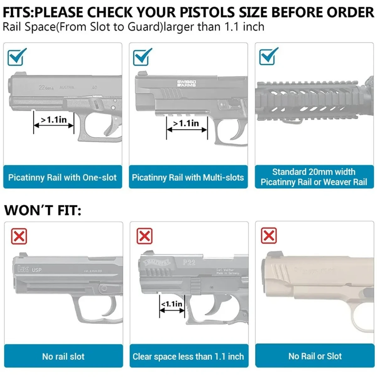 3. 【Mini mira láser】 Compacto y liviano, le brinda una excelente experiencia de uso.Y no afectará el almacenamiento de su pistola en la funda después de usarla.