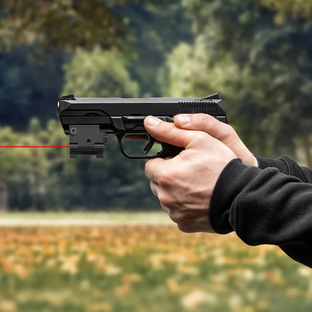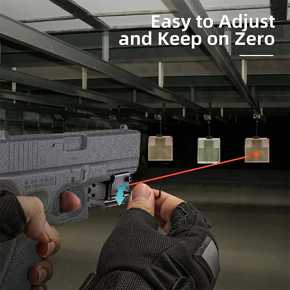 2. 【Láser rojo preciso y personalizado】 Salida de potencia de clase IIIA ≤ láser rojo de 5 mw para máxima visibilidad de día o de noche.Funciona muy bien con poca luz y de cerca.Y el láser de pistola tiene ajuste horizontal y vertical.Fácil de seguir cero y hacer su puntería con precisión.