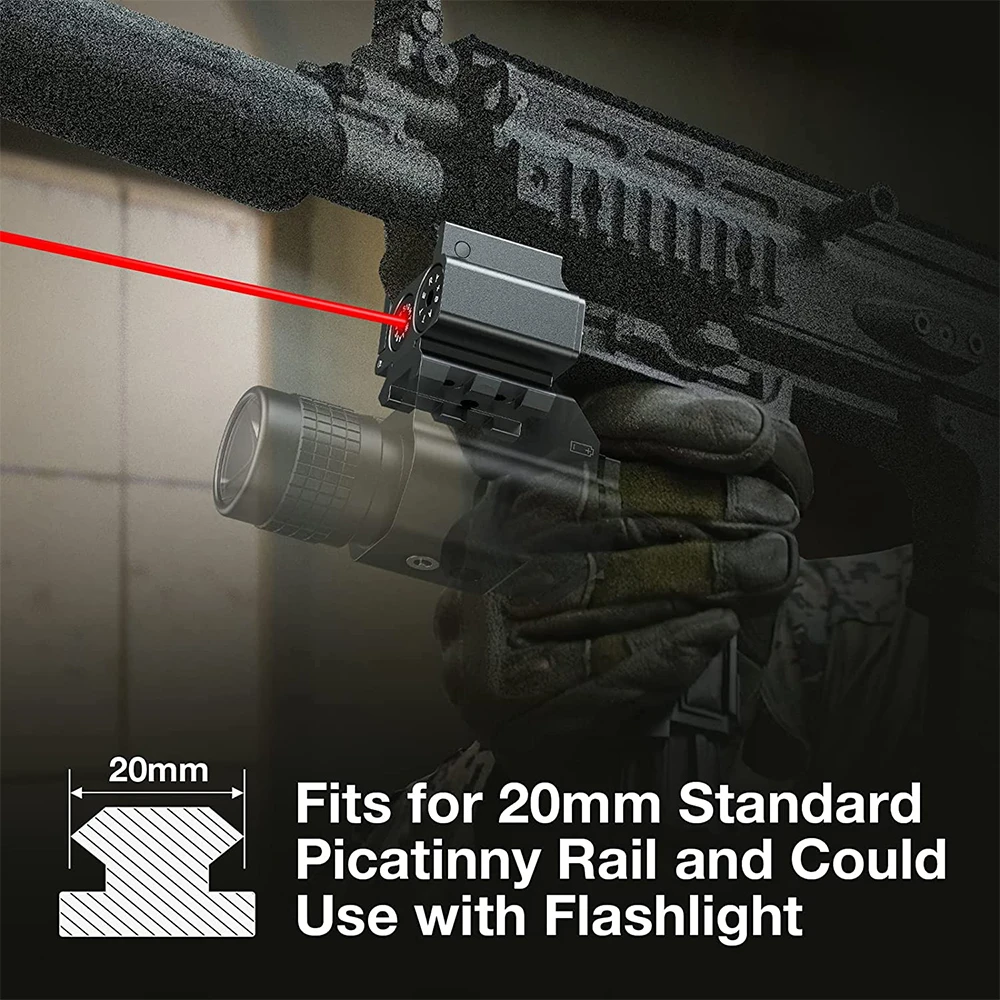 4. 【Fácil de instalar】 La mira láser roja se adapta a riel picatinny de 20 mm y tiene una montura de riel picatinny que se puede usar con una linterna.La mira láser fue fácil de instalar y solo un tornillo podría bloquearla en su pistola.