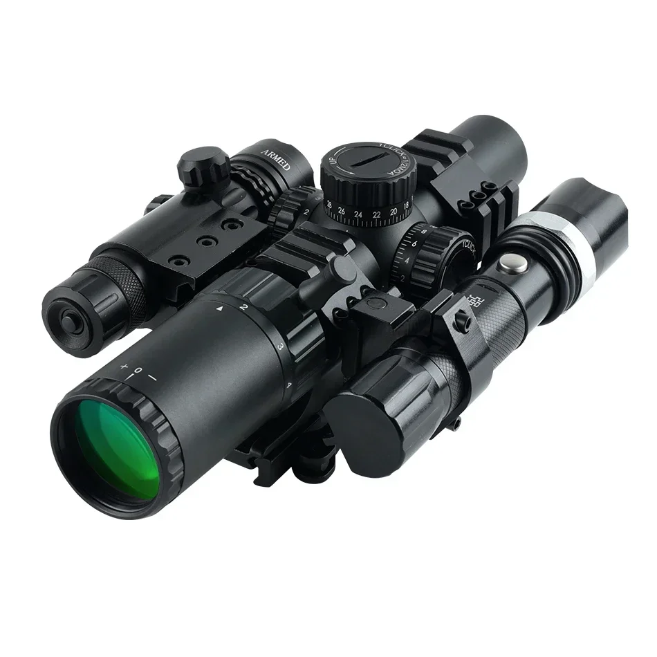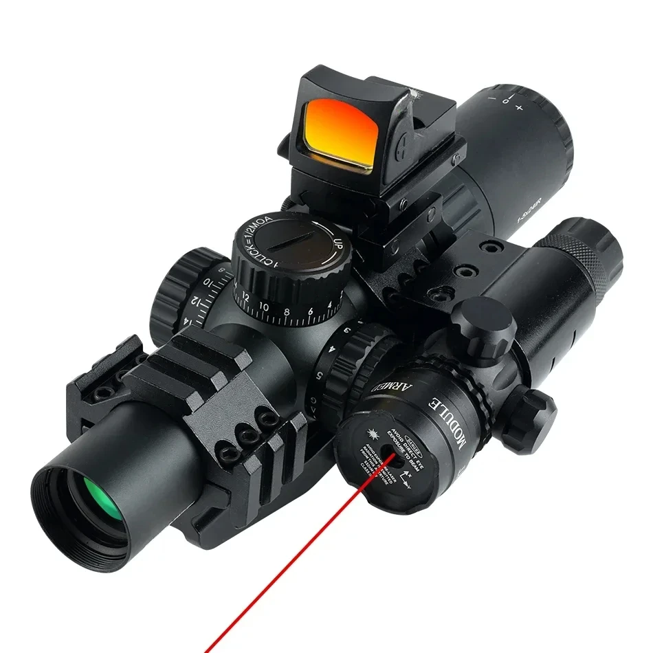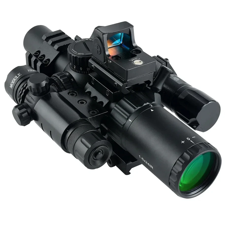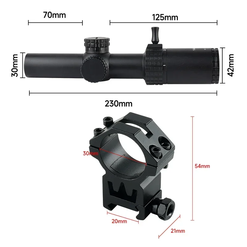 Mira de rifle táctica de alto rendimiento, con un aumento de 1-5x, capaz de disparar a un alcance cercano al medio de más de 300 yardas.