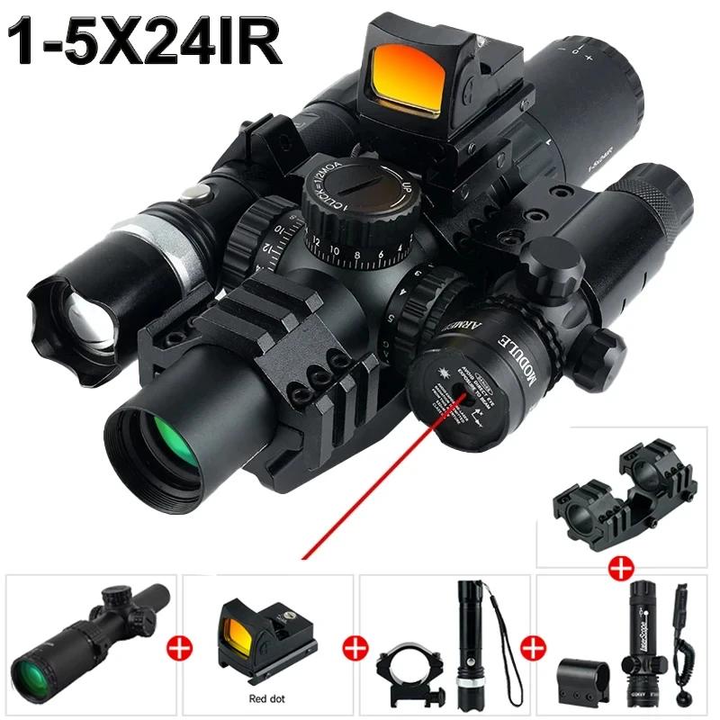 Mira de rifle táctica de alto rendimiento, con un aumento de 1-5x, capaz de disparar a un alcance cercano al medio de más de 300 yardas.