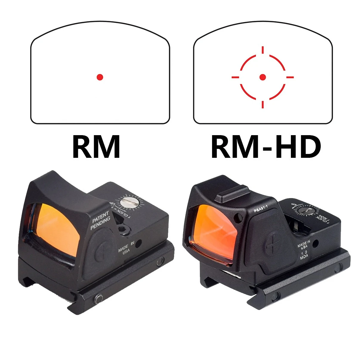 Mini mira de punto rojo de Metal RM RM-HD, óptica reflejo para pistola GLOCK, mira para Rifle Airsoft, montaje en riel Picatinny de 20mm