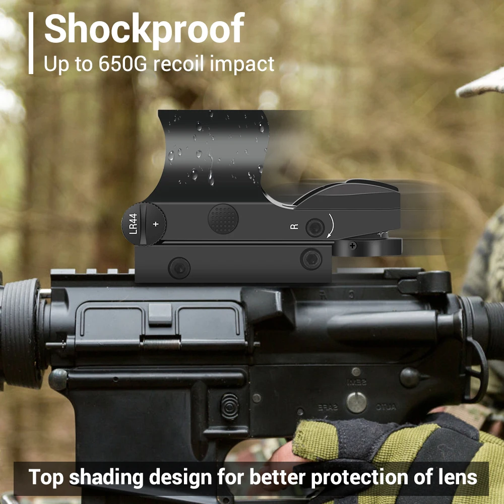 1.【Más precisión】: las lentes rojas totalmente multicapa de nuestras miras reflejas mejoran la claridad de la imagen y aumentan la transmisión de luz durante situaciones de poca luz.La lente refleja de 40 mm con diseño sin cámara proporciona un campo de visión más amplio (15,8 m a 100 m), corregido por paralaje y alivio ocular ilimitado, mejorando la precisión de las miras holográficas.