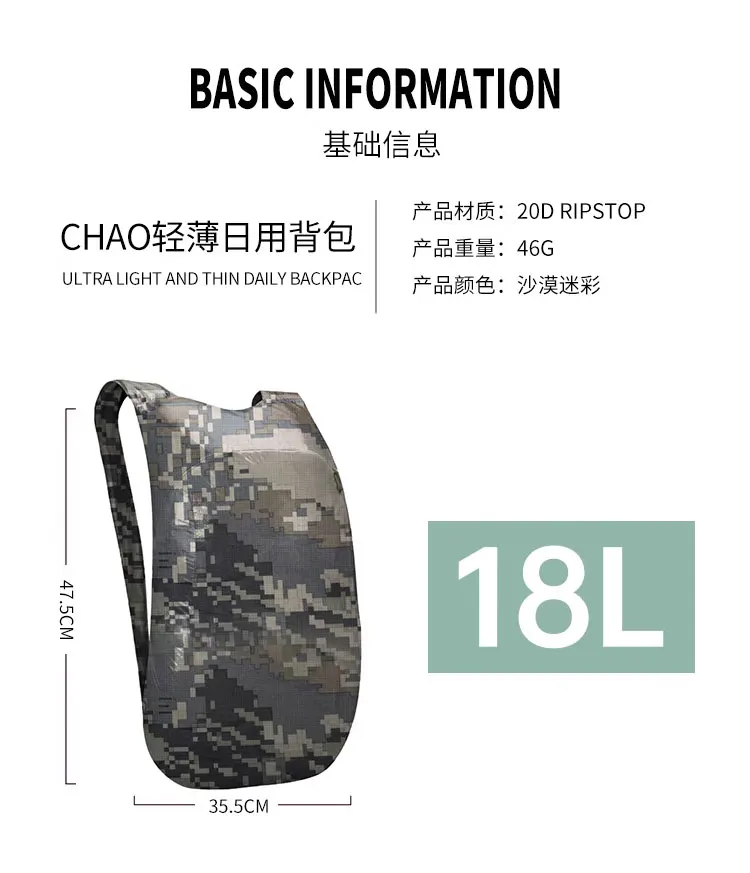 Mini mochila de camuflaje para parejas, portátil, ligera, súper impermeable, para exteriores