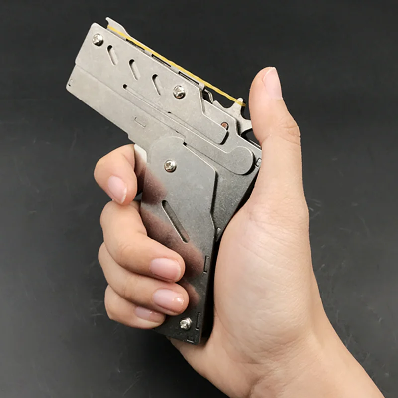 Mini pistola de goma plegable de acero inoxidable, lanzador de tiro, juguetes para niños, regalo de cumpleaños, accesorios de juego divertidos, plata, nuevo, 2022