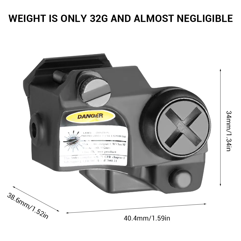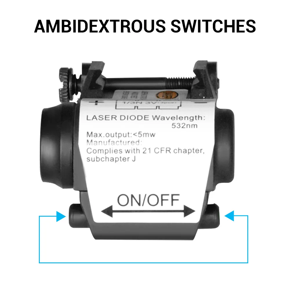 La activación es fácil y hábil tanto para usuarios zurdos como diestros. La mira láser está hecha de material de nailon reforzado con fibra, ultracompacto y ligero, con un peso de solo 32G