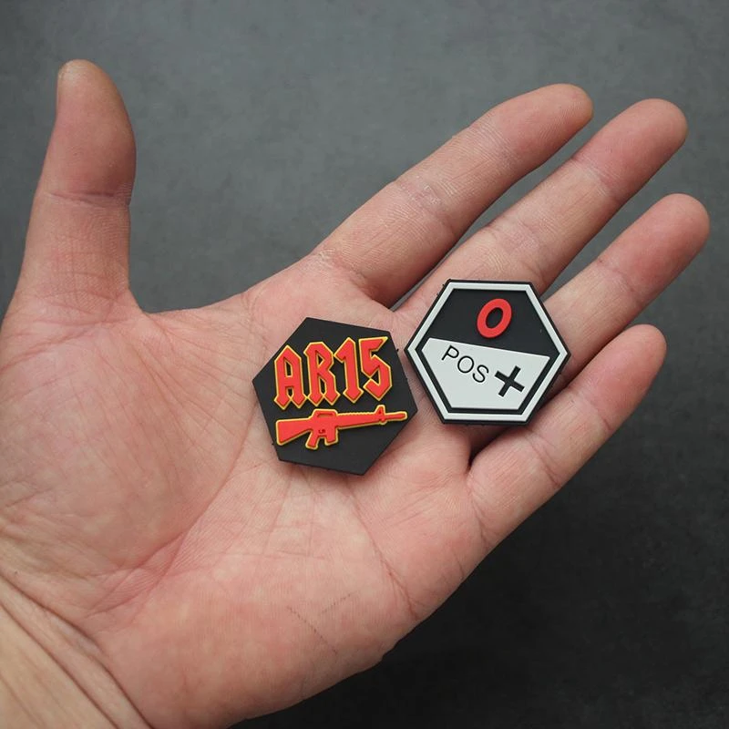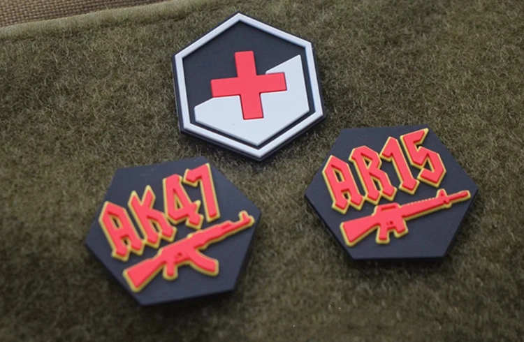 Mini sangre tipo AK47 AR15 parche de PVC Hexagonal EDC pequeñas armas médicas brazalete táctico para ropa mochila chaleco decoración