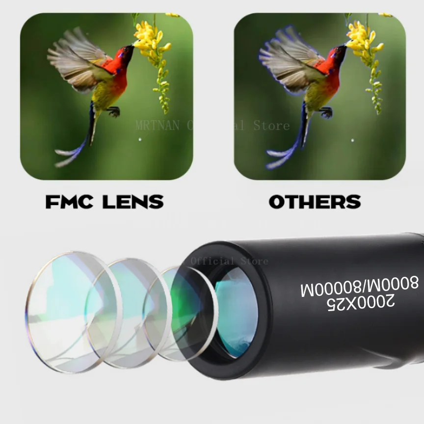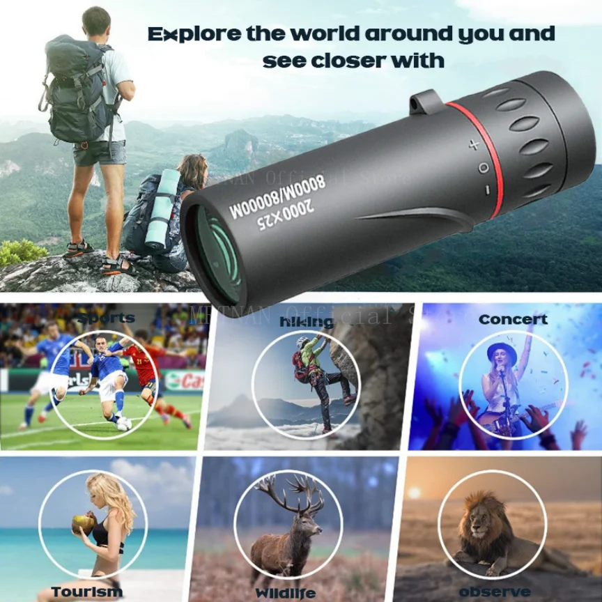 Mini telescopio de bolsillo para exteriores de 2000x25, telescopio profesional recubierto Fmc, telescopio para acampar al aire libre, caza, observación de aves