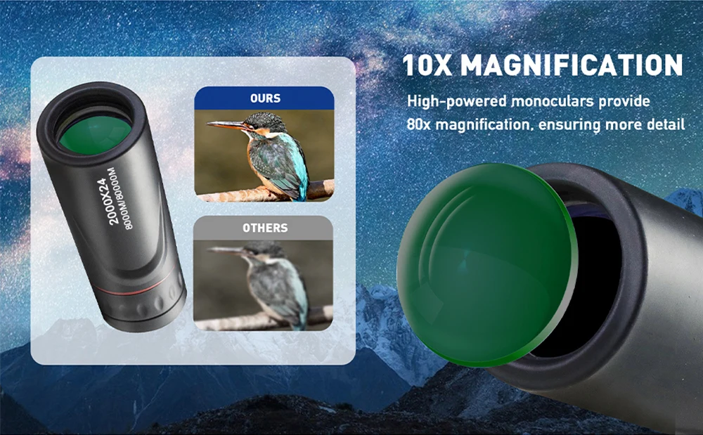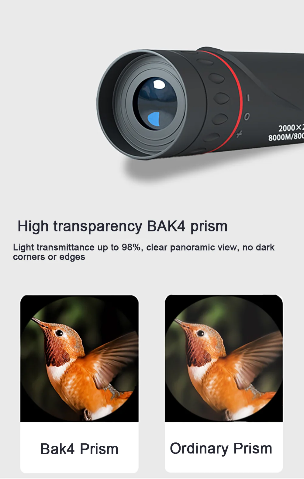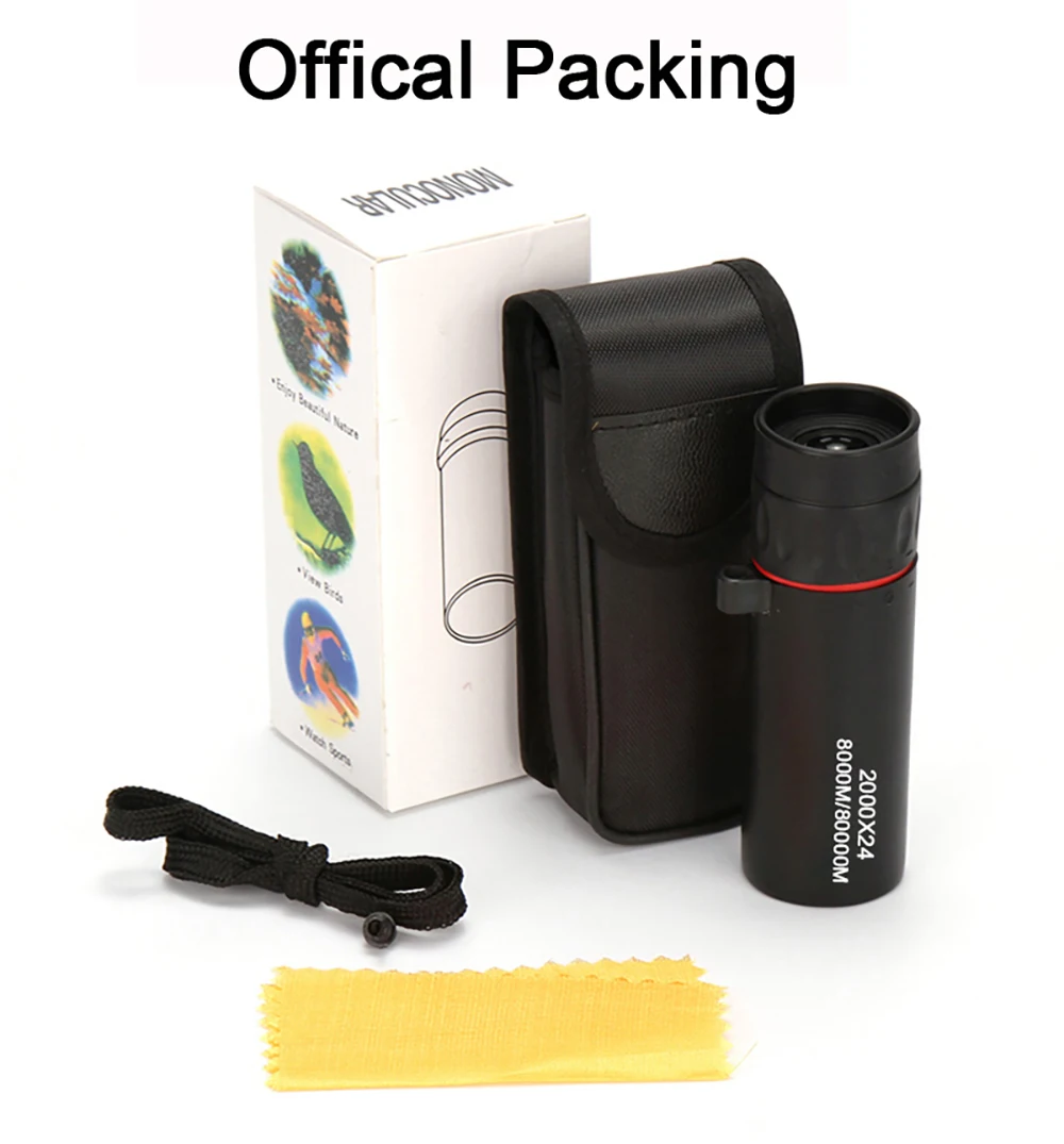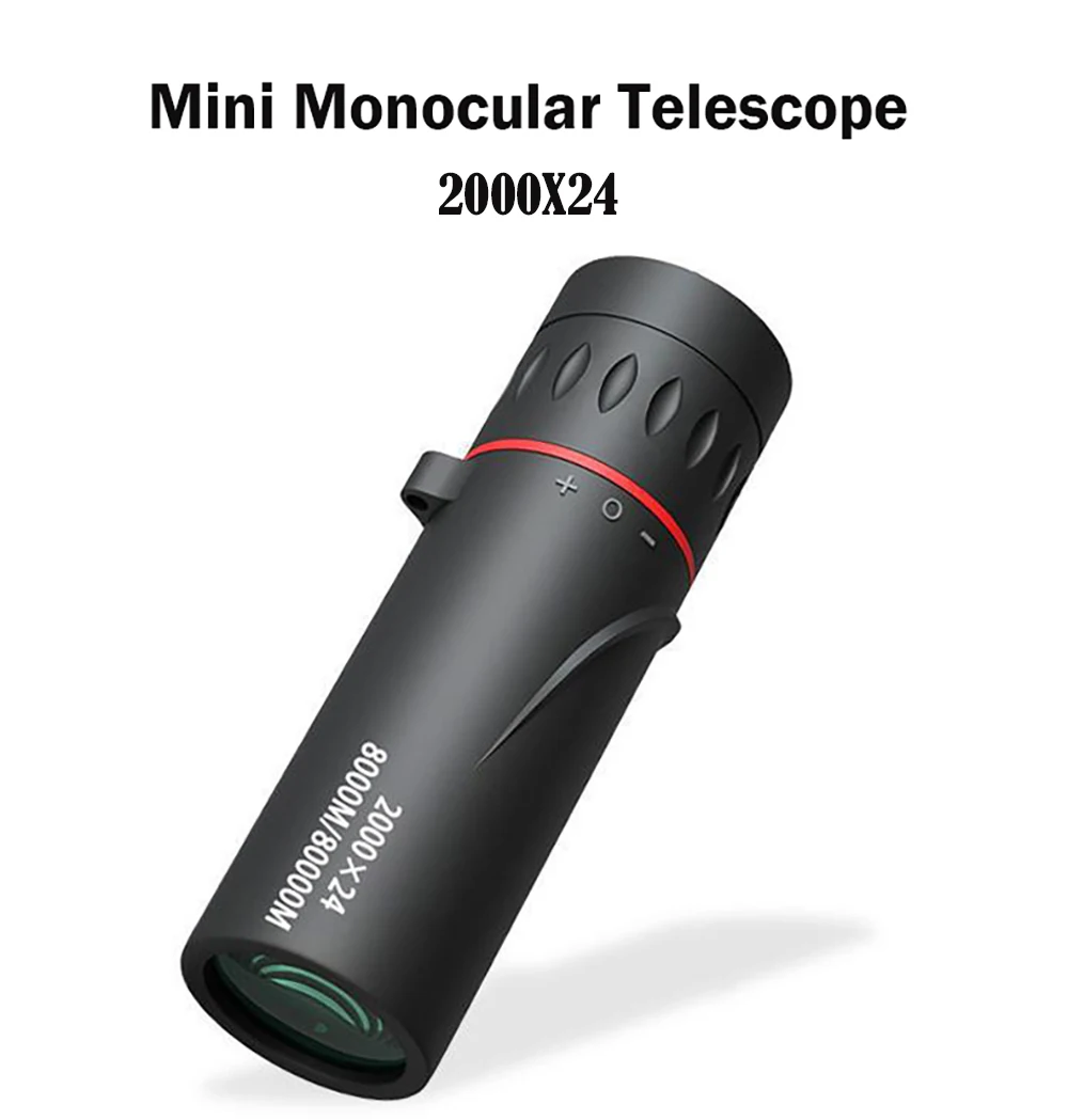 Mini telescopio Monocular 2000X24 para adultos con adaptador de teléfono Monoscopio de bolsillo ligero monocular recubierto FMC para regalos para niños