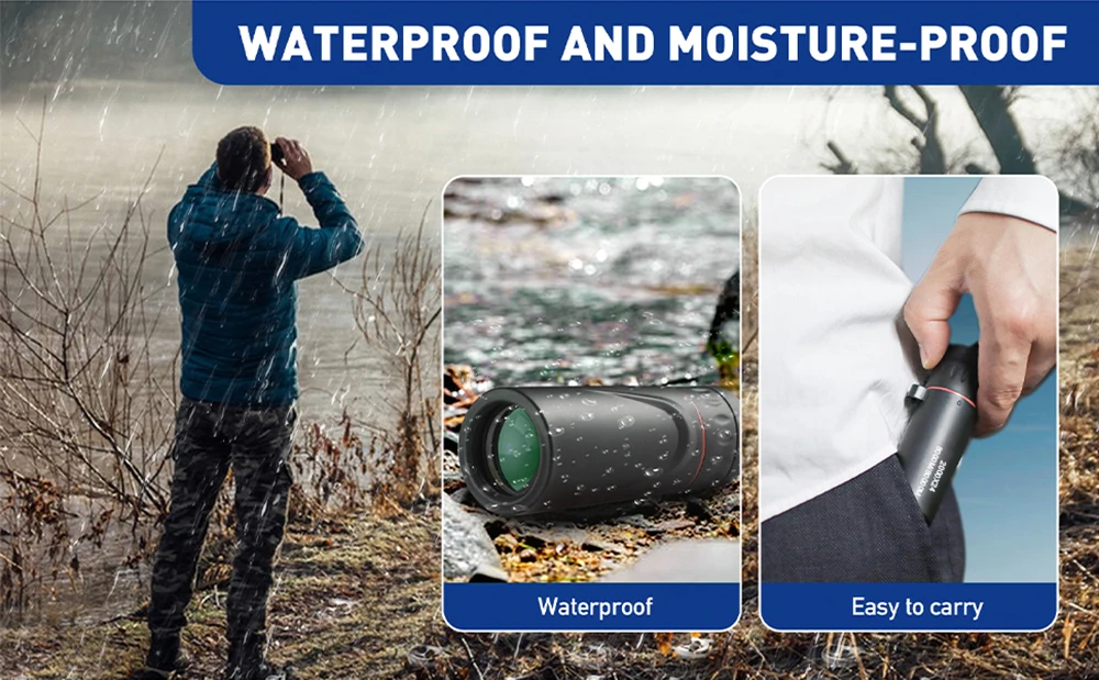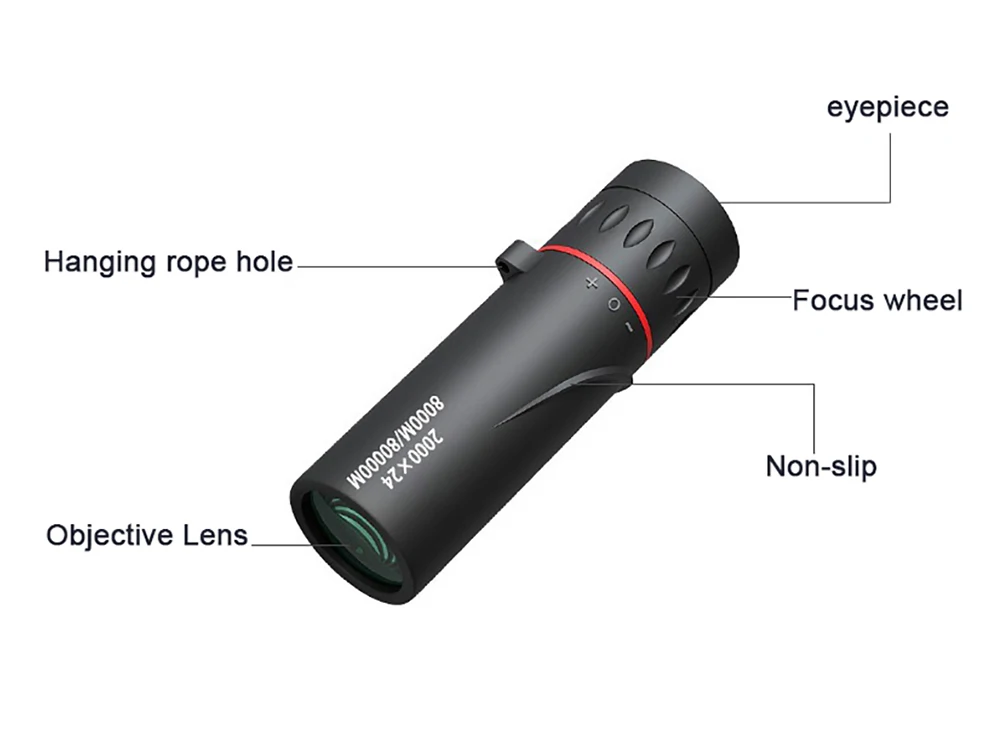 1.Este monocular ofrece un aumento de 10X y un diámetro objetivo de 28 mm.