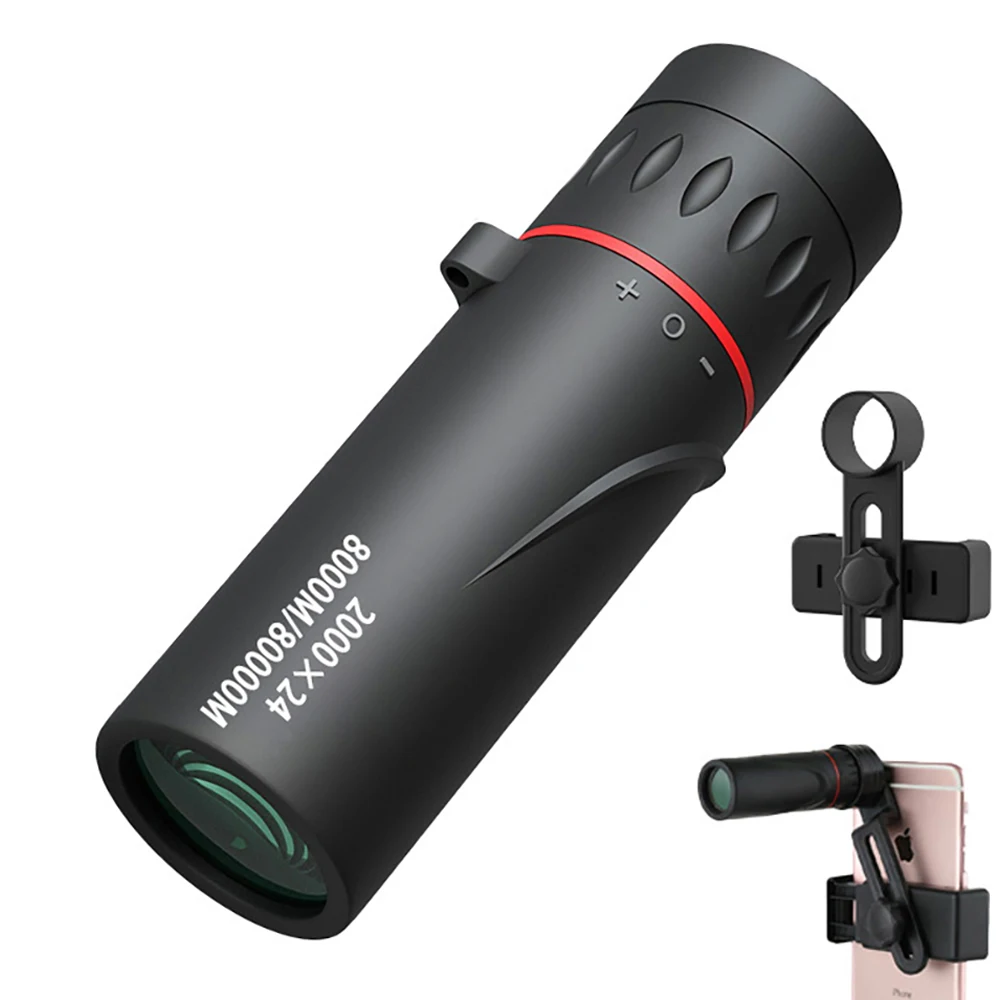 Mini telescopio Monocular 2000X24 para adultos con adaptador de teléfono Monoscopio de bolsillo ligero monocular recubierto FMC para regalos para niños