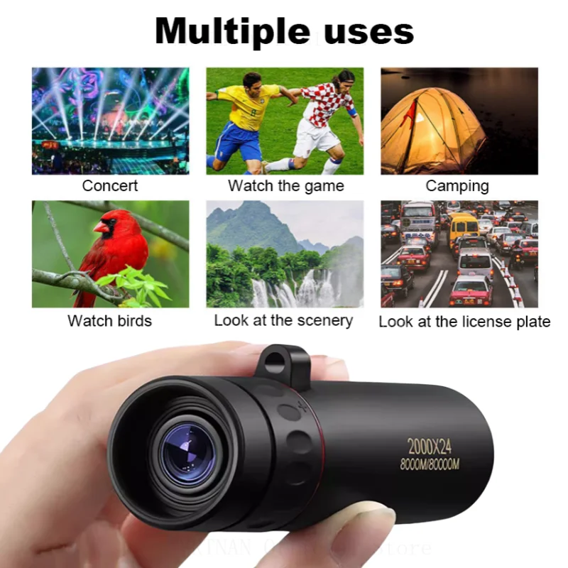 Telescopio Monocular 2000x24, Mini Binocular portátil HD de poca luz, resistente al agua, para acampar al aire libre, escalada, observación de aves