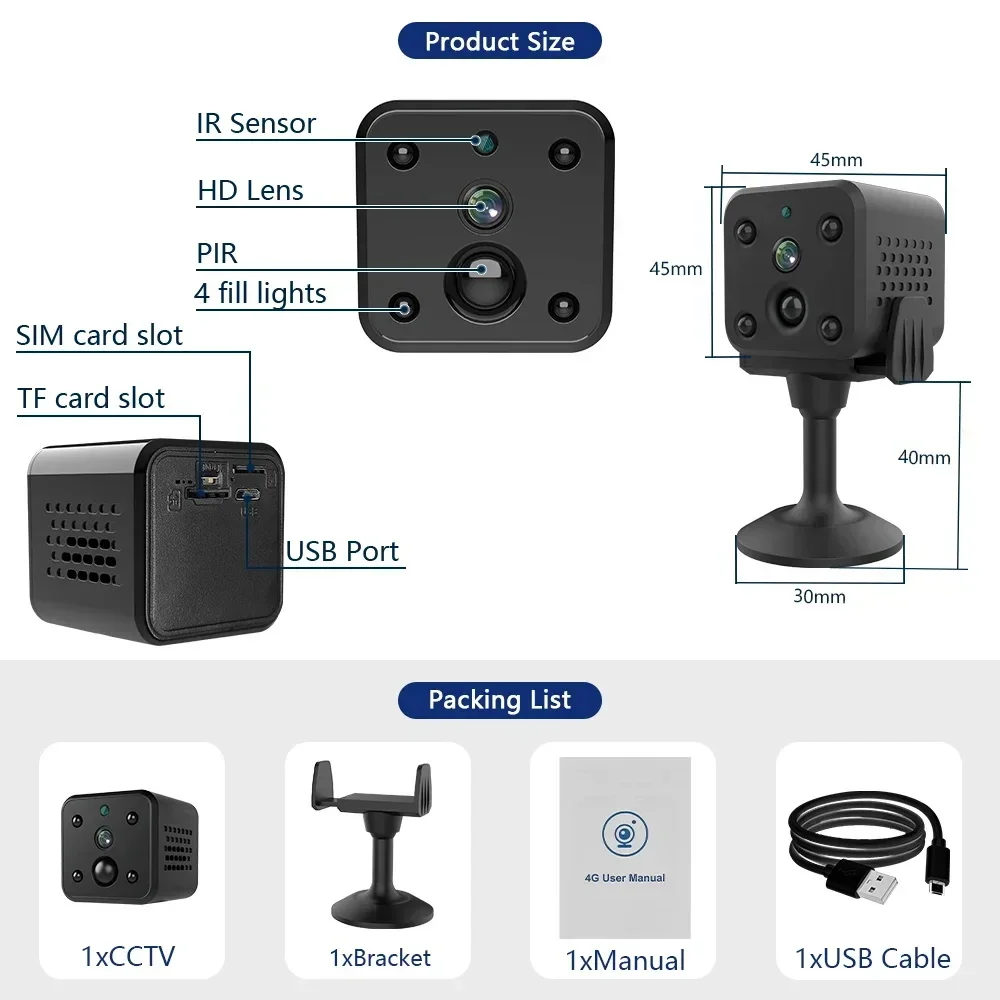 - Su cámara puede funcionar en el rango 3G/4G con fácil acceso al entorno de red.(Red WI-FI no compatible)