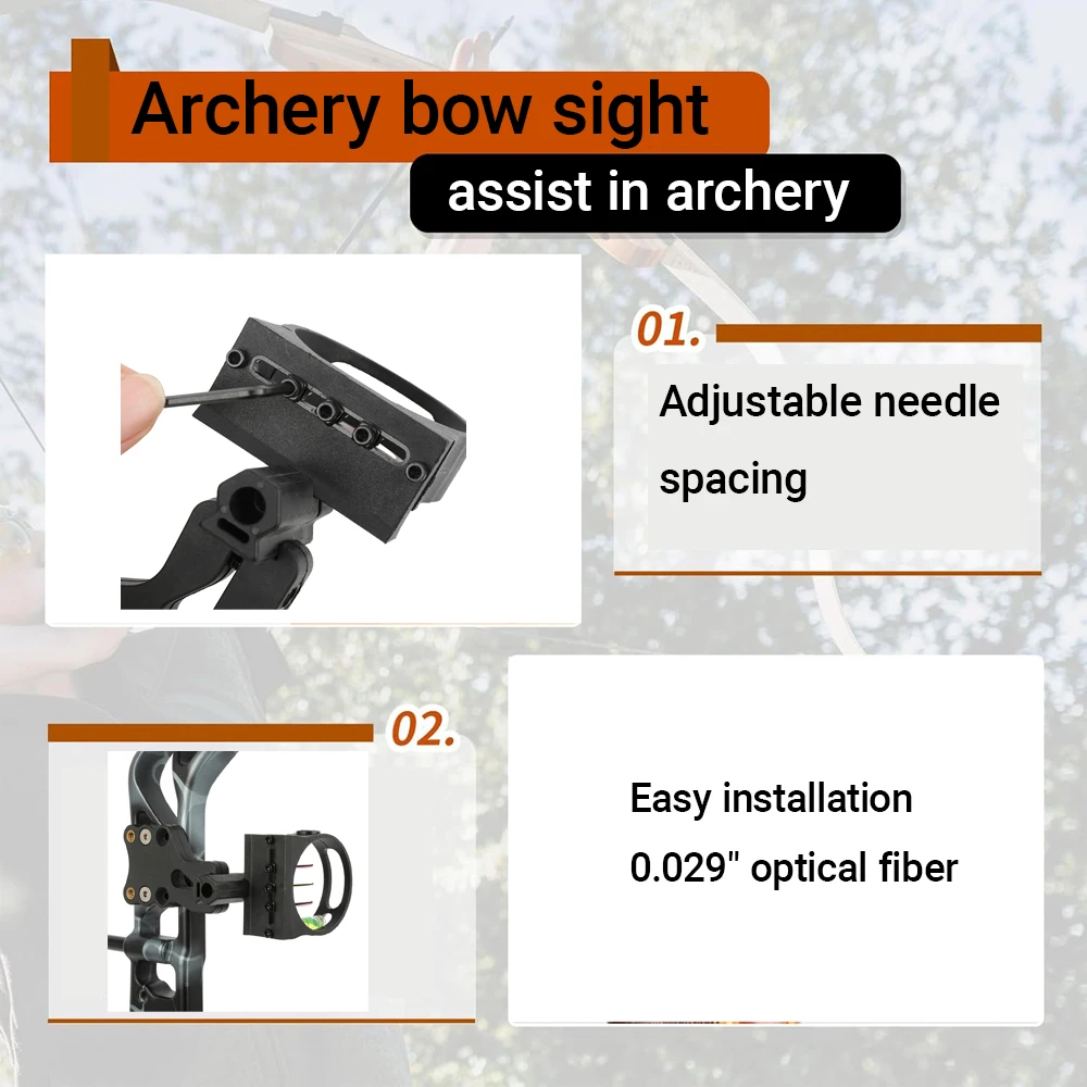 Características: 1. 【Precisión mejorada】 La mira de arco de fibra óptica de 3 pines proporciona puntos de puntería precisos para mayor precisión y precisión.La tecnología de fibra óptica garantiza pasadores de visión claros y brillantes, lo que permite un mejor rendimiento. 2. 【Elegante y diseño】 Hecho de material de aluminio, esta mira de arco está diseñada para durar.Su diseño compacto y liviano, que mide 10,8x8,7x5 cm, hace que sea fácil de transportar e instalar en su arco.El elegante color negro añade un toque elegante a tus accesorios. 3. 【Fácil ajuste】 Con una configuración de 3 pines, esta mira de arco permite un fácil ajuste al rango deseado. Logre la distancia deseada sin esfuerzo con esta mira de arco. 4. 【Amplia aplicación】 Ya sea que esté realizando actividades de tiro al blanco o de caza, esta mira de arco es un accesorio esencial.Su compatibilidad tanto con arcos compuestos como con arcos recurvos lo hace adecuado para diversas disciplinas.Lleve sus habilidades al siguiente nivel con esta mira confiable. 5. 【Excelente valor】 Esta mira de arco ofrece una relación calidad-precio excepcional. Con su construcción, puntos de puntería precisos y capacidades de fácil ajuste, es imprescindible para los entusiastas. Actualice su configuración con esta mira de arco de alto rendimiento y disfrute de una mayor precisión.