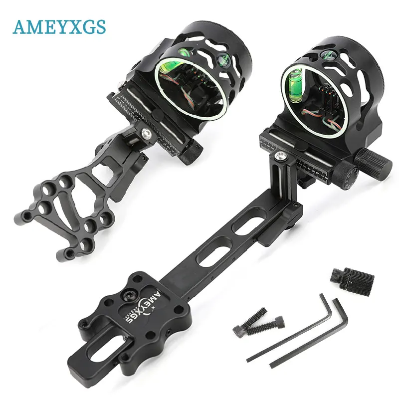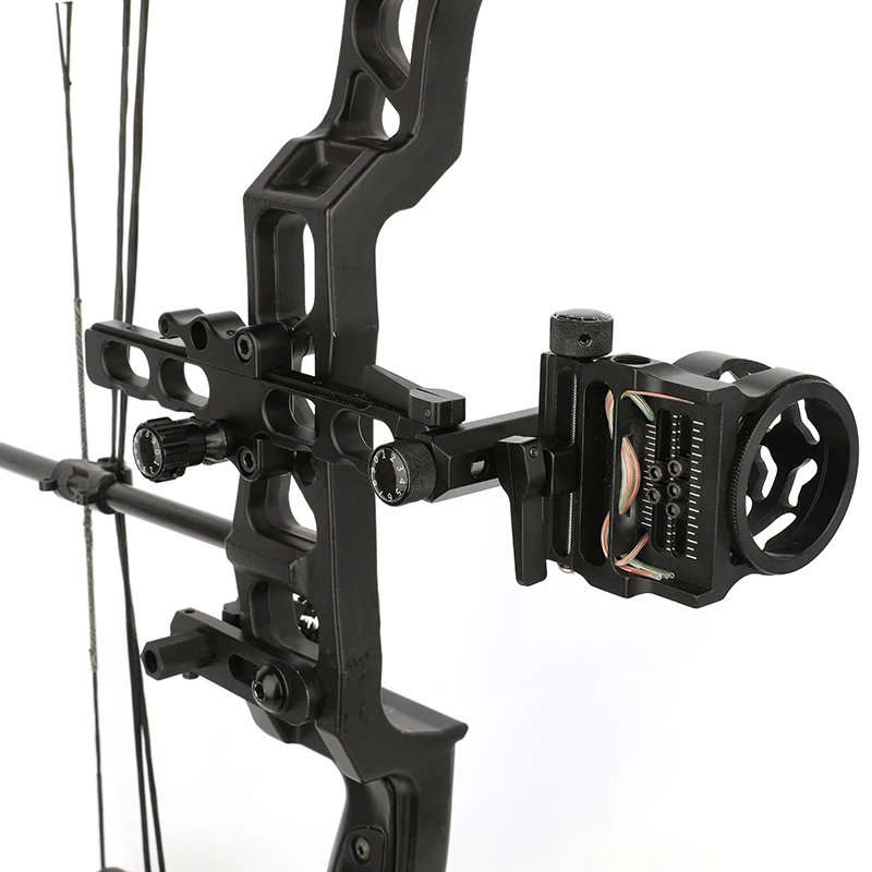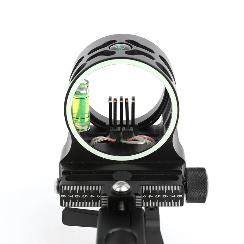Mira de arco compuesto de 5 pines, barra corta negra, varilla larga, arco de tiro con arco para deportes al aire libre, accesorios de entrenamiento de caza