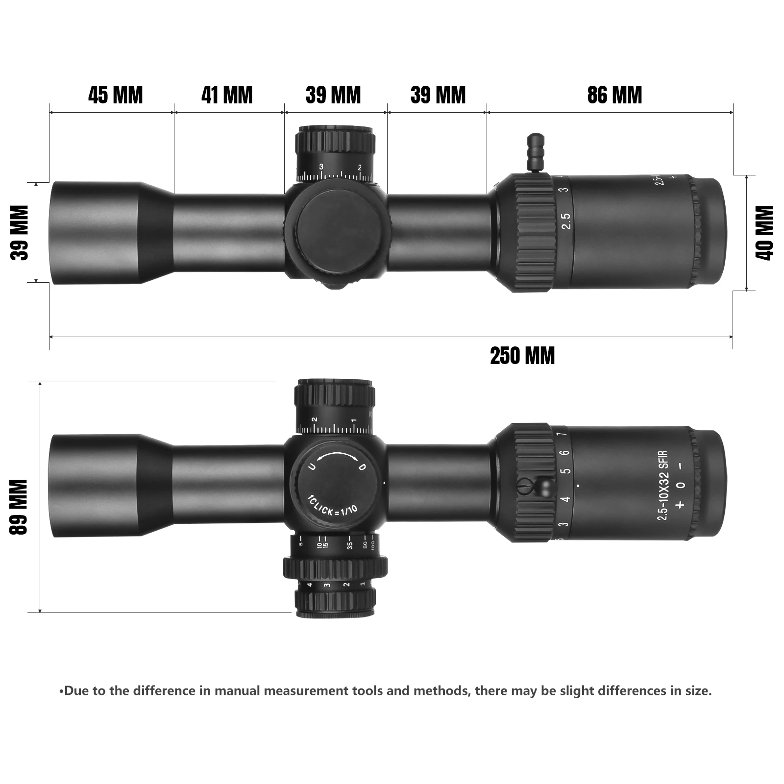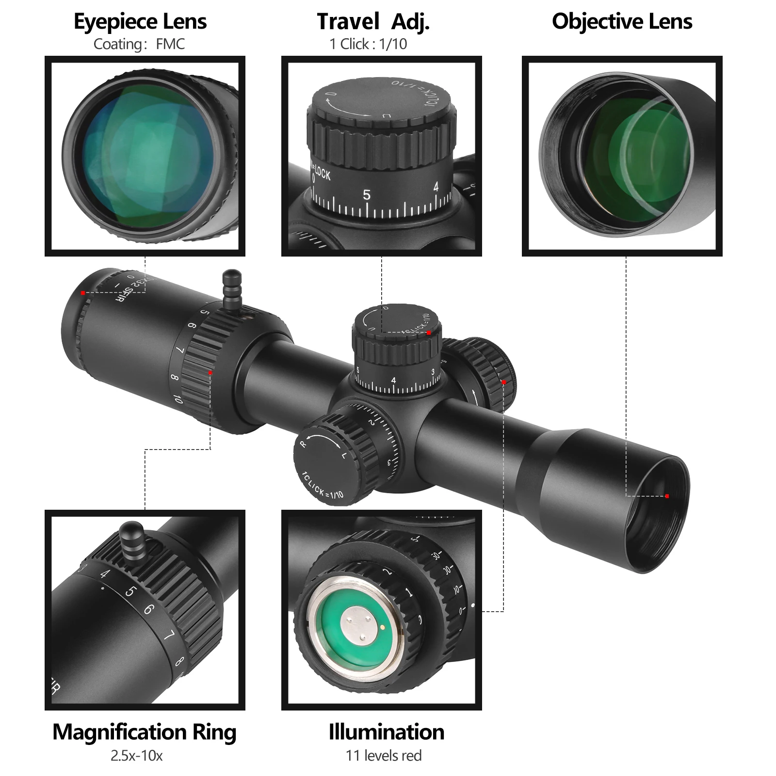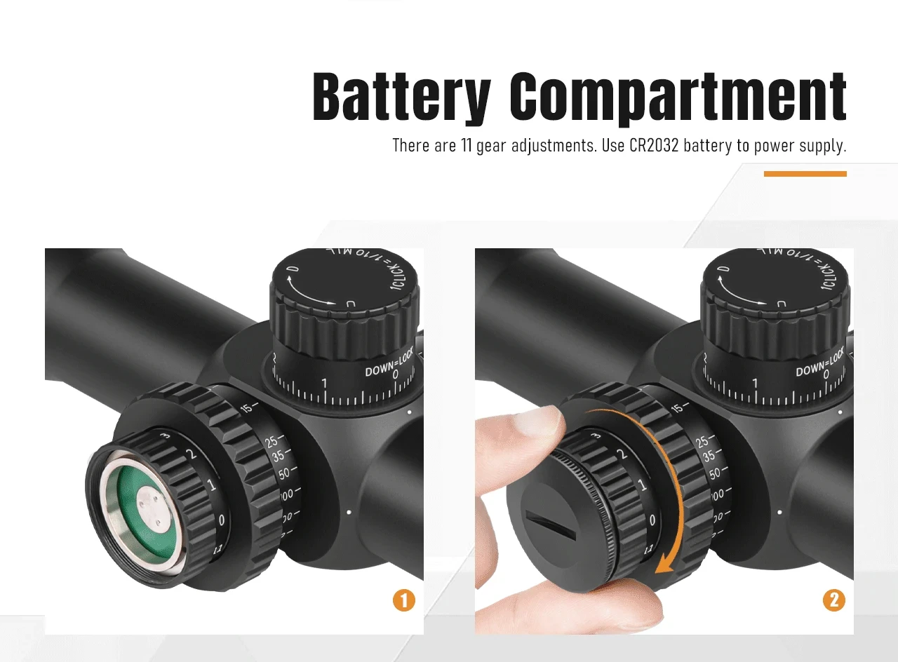· Ajuste de torreta de perfil bajo de 1/10MIL con función Re-Zero.