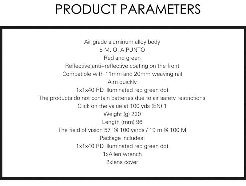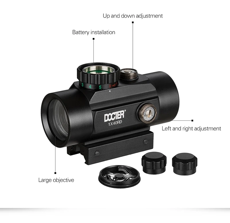 Mira holográfica para caza, mira de punto rojo y verde de 1x40, mira de colimador con montaje en riel de 11mm y 20mm