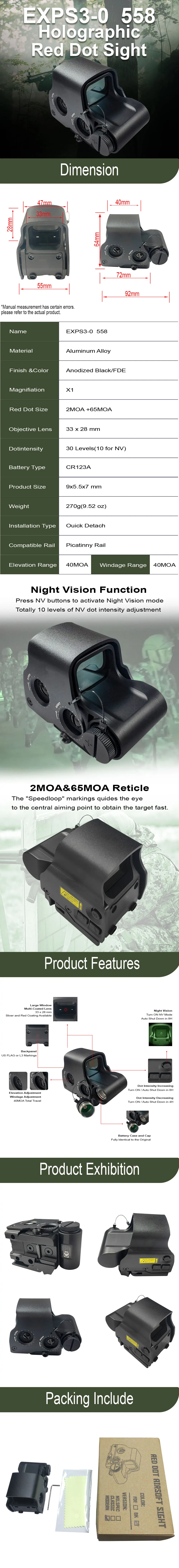 Fast Locating-Holographic hybrid sight and 3x magnifying glass combination is ideal for shooters who love fast-aiming middle-range shooting or middle-range hunting.