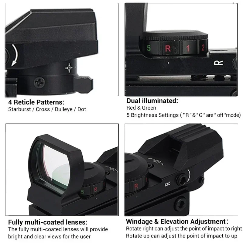 - Con tornillo de bloqueo, fácil de ajustar cero y sujetar bien. Ajustees de clic de elevación y deriva tipo tornillo de cabeza Allen