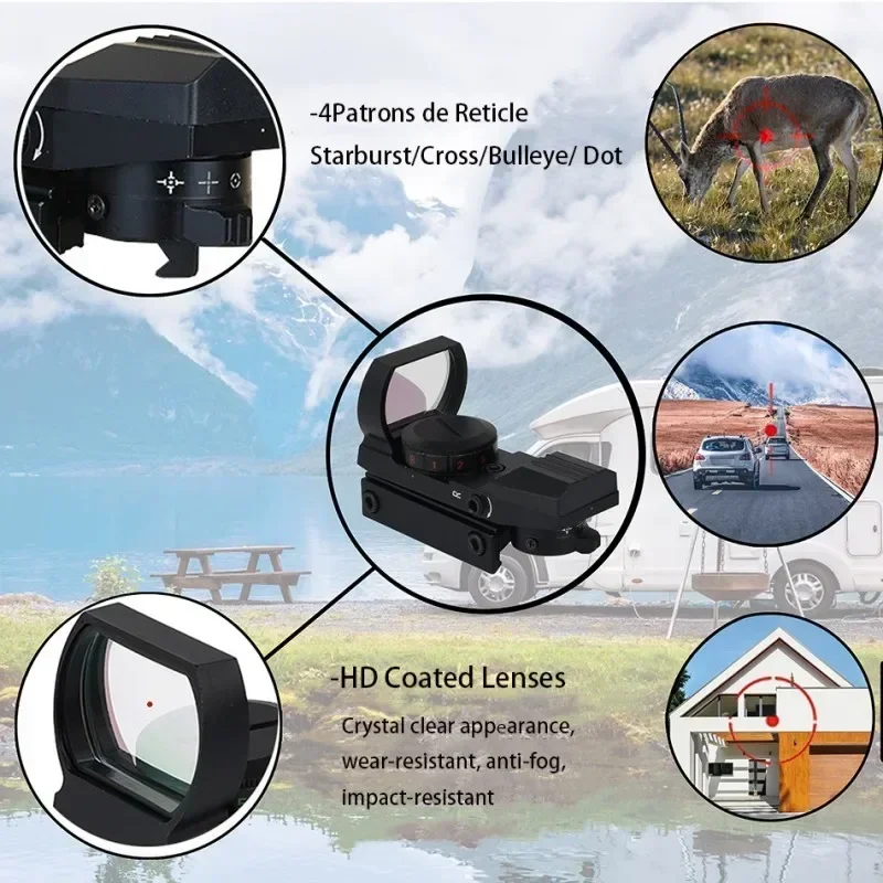 - 4 formas de retícula en una vista refleja brindan varias opciones en diferentes ocasiones, como sol y días nublados.