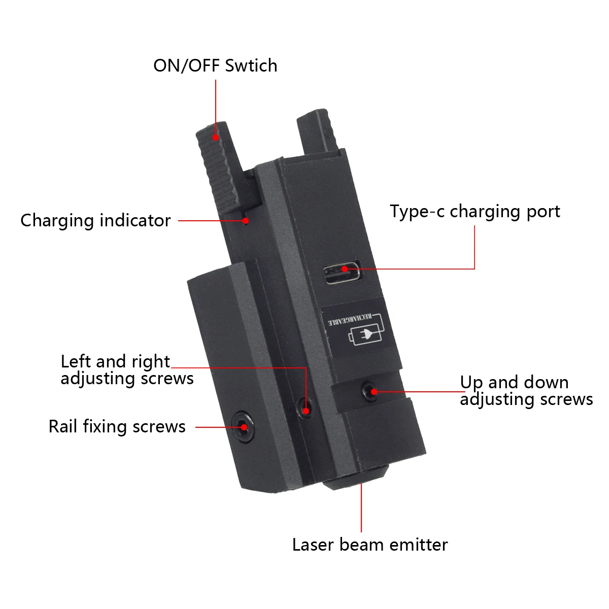 Mira láser con carga USB táctica, punto rojo/verde para riel de 11mm/20mm, compatible con Glock G17/G19, puntero de puntería de caza