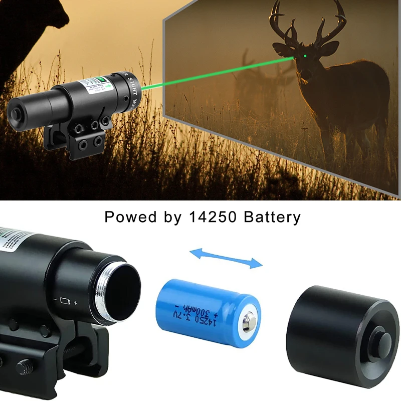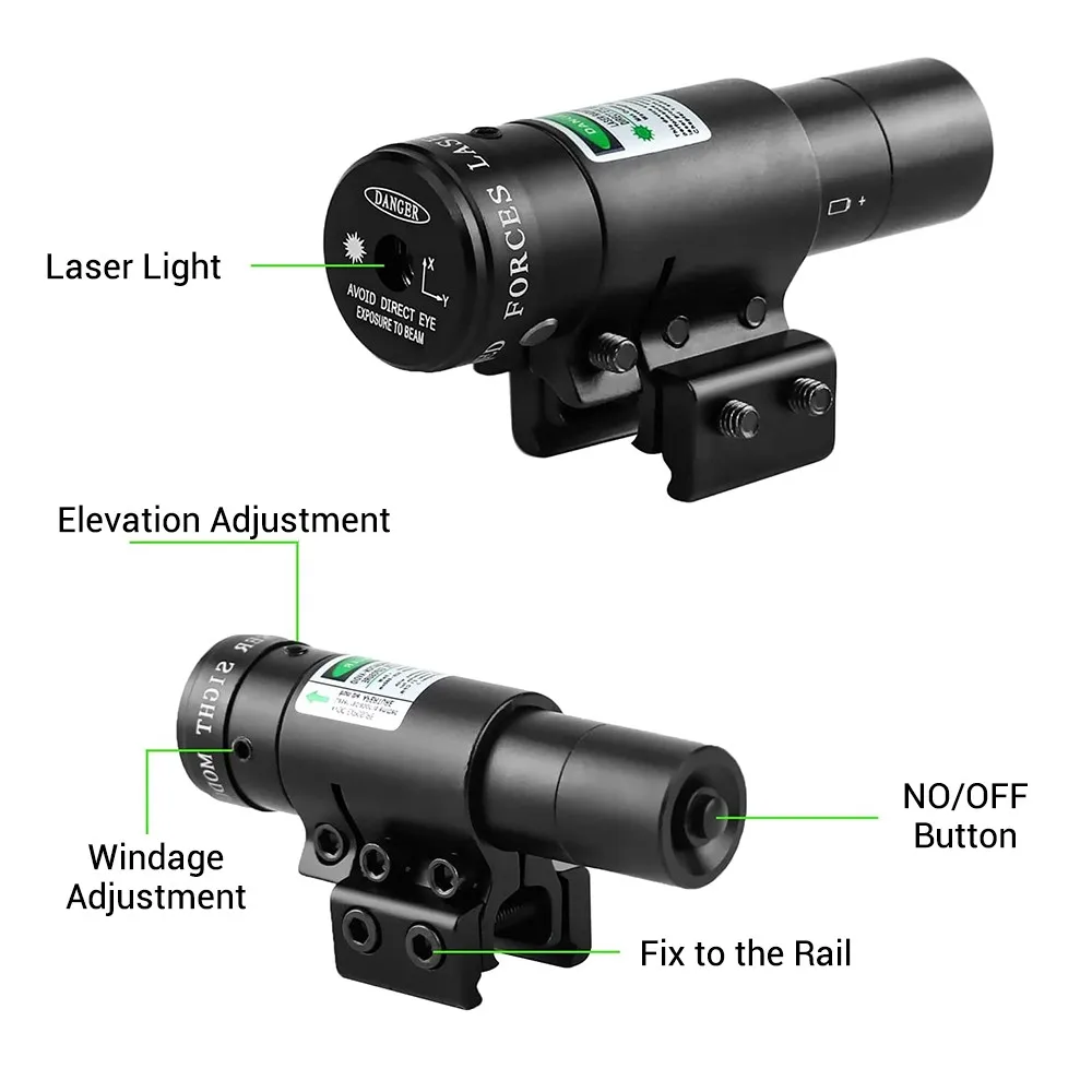 3. Este láser de punto rojo/verde se puede conectar fácilmente a pistolas y pistolas con riel Picatinny / Weaver de 20mm o riel de cola de Milano de 11mm.