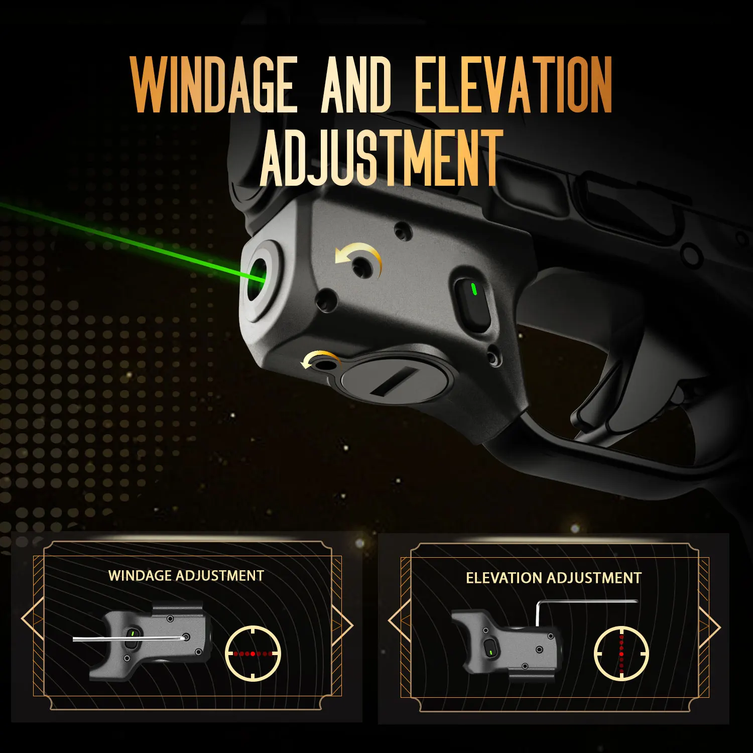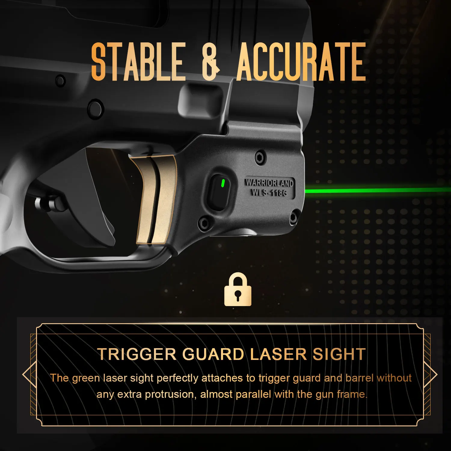 La mira láser se fija perfectamente al protector del gatillo y al cañón sin ninguna protuberancia adicional, casi en paralelo con el marco de la pistola.El protector del gatillo y el cañón hacen que el láser se asegure firmemente en la pistola para una mejor precisión de disparo.