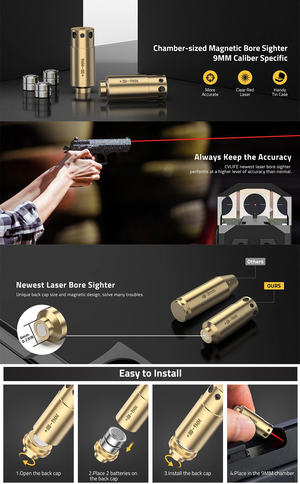Con el exclusivo diseño de tapa trasera, la mira con orificio láser de 9 mm 223 funcionará mucho mejor con precisión del láser: cuando se coloca en la cámara y se cierra el perno, el orificioero evita el contacto con el borde del extractor y permanece en la posición central en la cámara.El láser rojo permanece centrado y ayuda a alinearse con el objetivo.