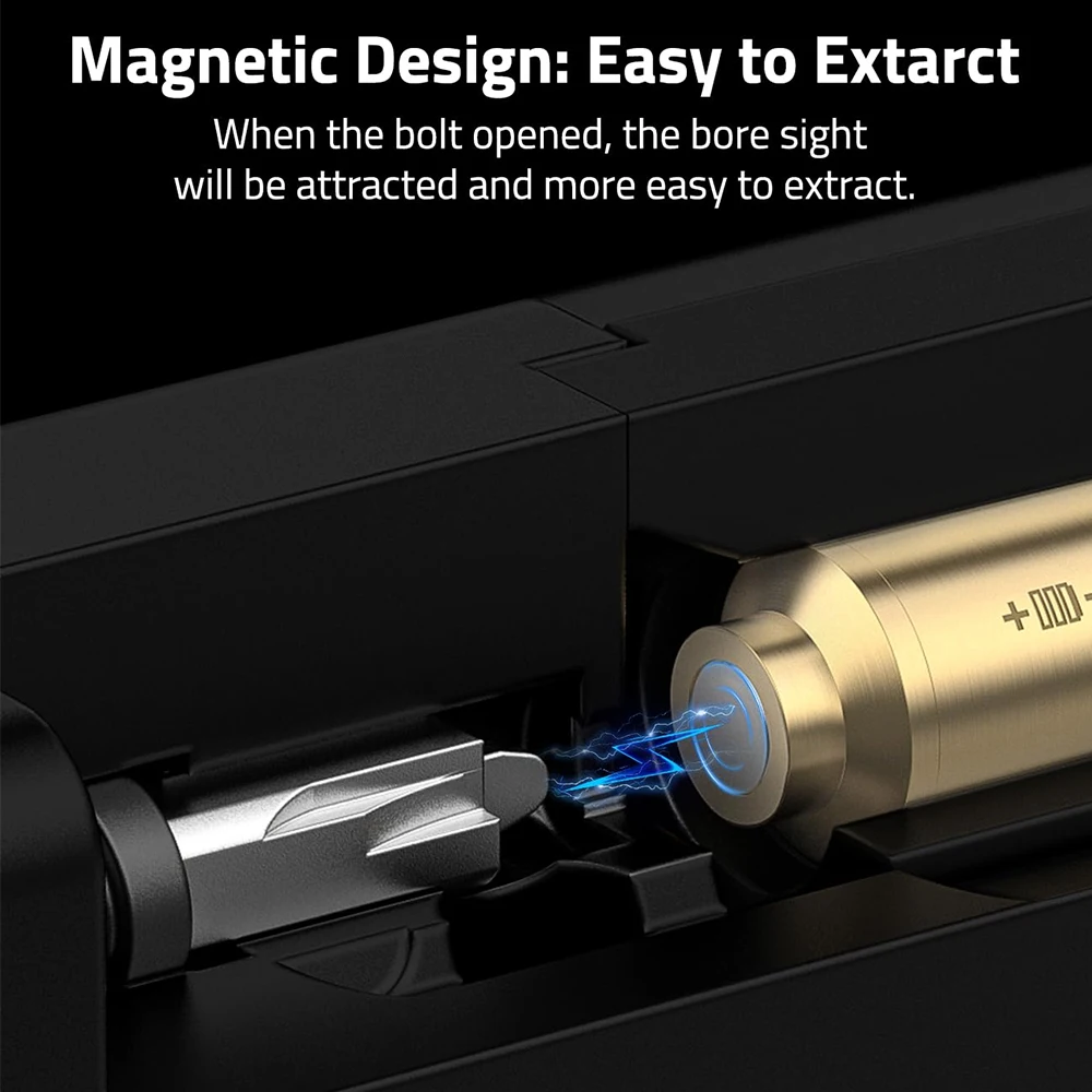 Diseñado específicamente con una tapa trasera magnética.Los potentes imanes mantienen la mira del orificio del láser firmemente sujeta al extractor.No solo fije la posición del láser de puntero de 9 mm 223, abra el perno, sino que la mira de orificio se llevará magnéticamente fuera de la cámara.No habrá más problemas de quedarse atascado en la cámara o el barril.