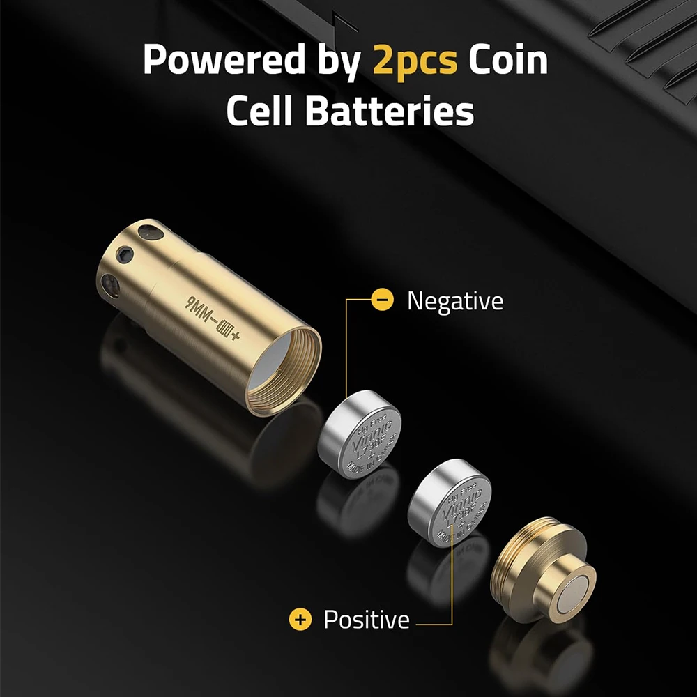 3 baterías alimentan la mira láser de 9 mm 223 y 5,56 mm, el láser rojo claro durará aproximadamente 1 hora.Embalado con 2 juegos de baterías.