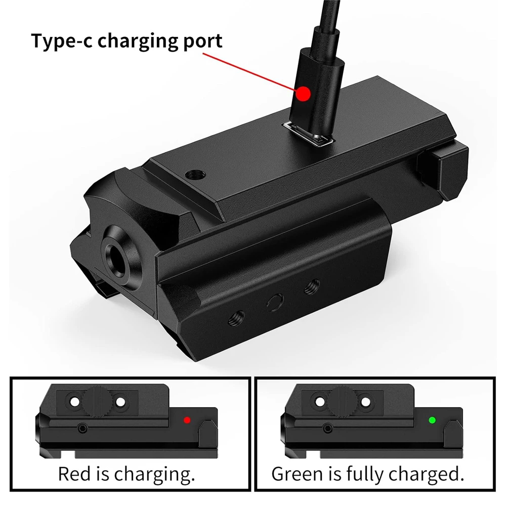 【USB Rechargeable】The laser sight is built with Type-C charge port and rechargeable battery. The Type-C charging allows recharging without removing the device, more convenience. And the rechargeable battery provide a long battery using life, no more disposable batterries waste.
